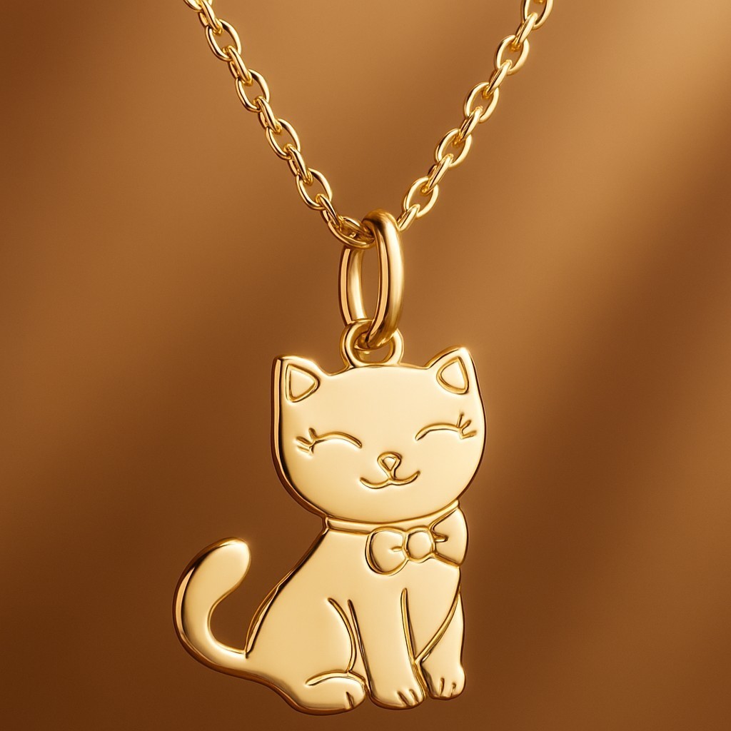 Un petit chat espiègle suspendu à une chaîne délicate plaqué or 750 – 3 microns, pensé spécialement pour les enfants. Ce pendentif miniature capture toute la tendresse féline dans un format adapté aux petits cous.