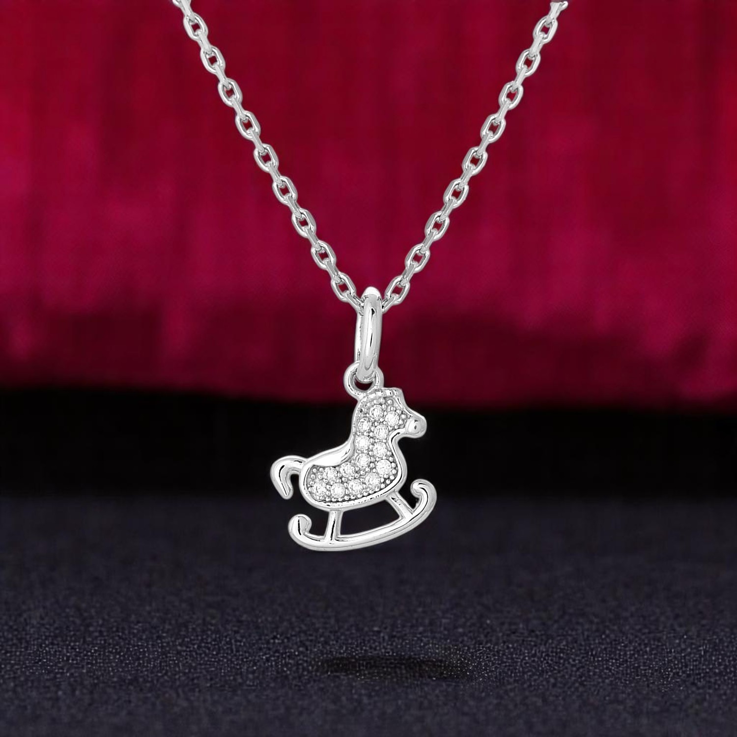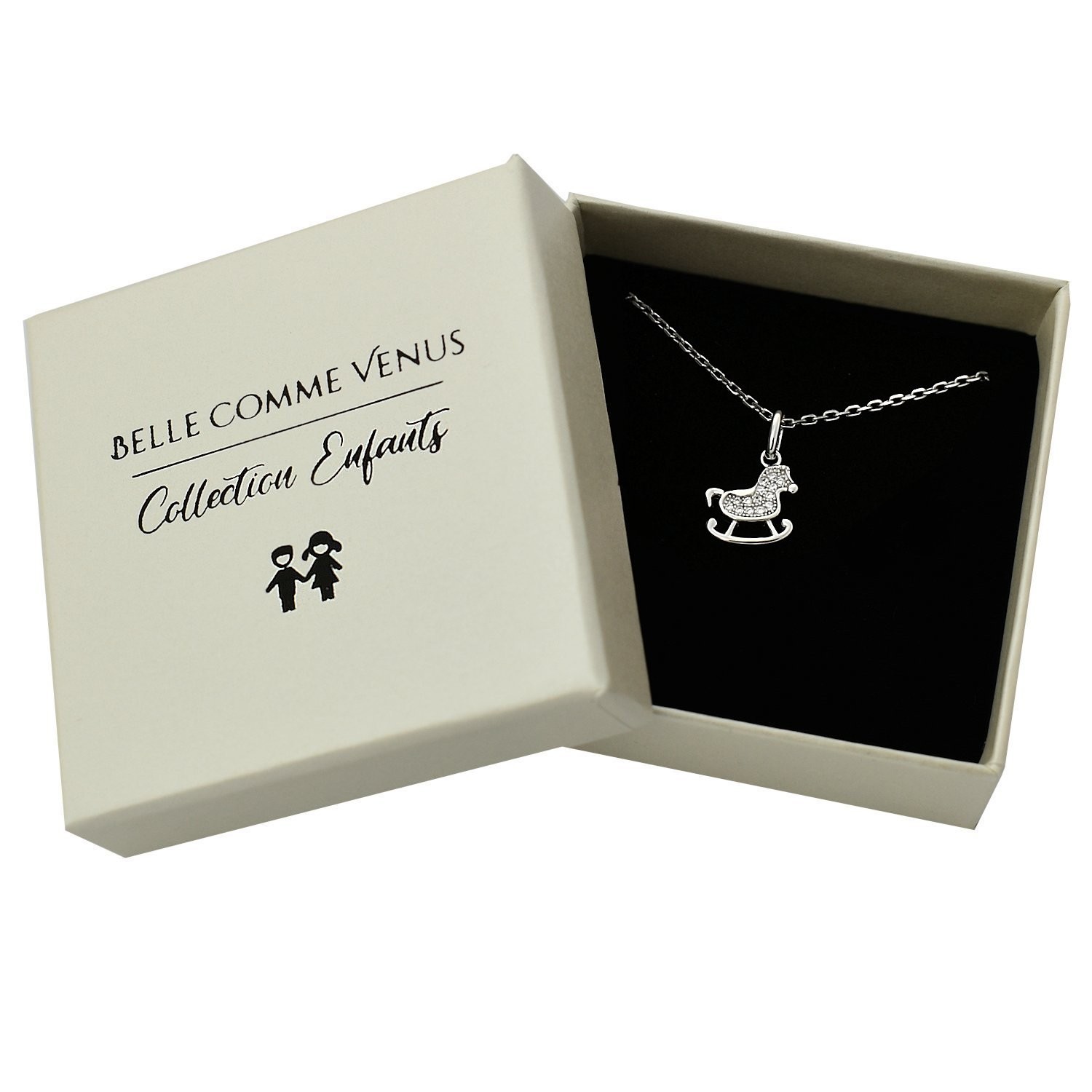 L’argent 925 rhodié est hypoallergénique et parfaitement adapté aux enfants. Les oxydes de zirconium illuminent le cheval à bascule avec éclat précieux. Un collier qui traverse les années sans ternir, accompagnant l’enfance avec tendresse, sécurité et finition joaillière scintillante pour des souvenirs précieux.