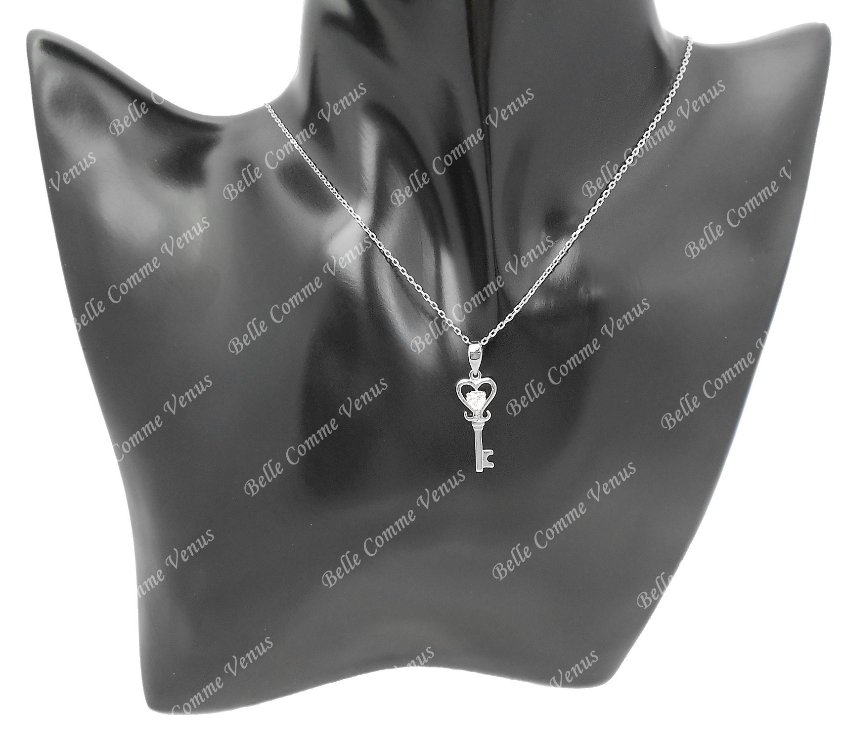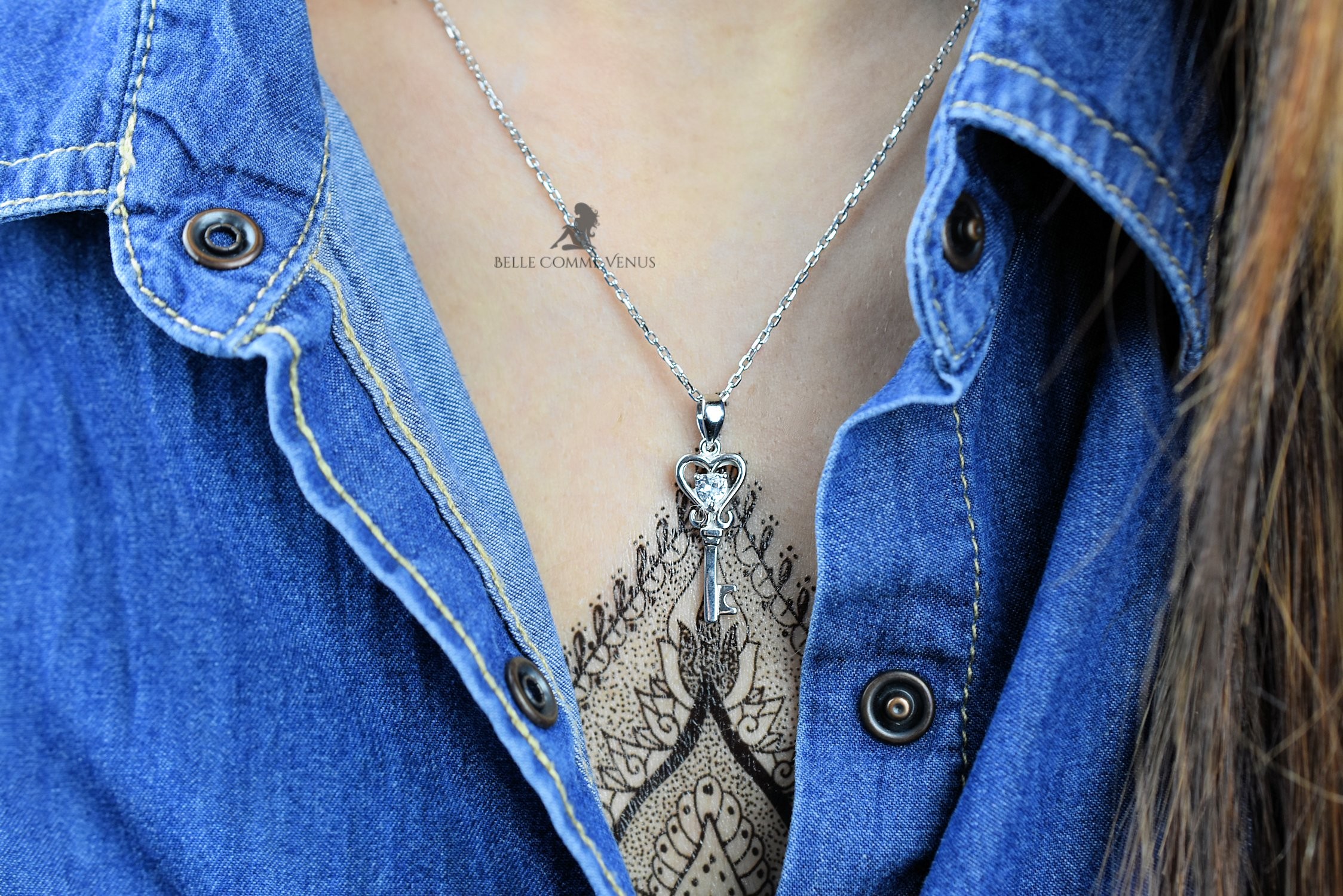 Un collier clé en argent 925 rhodié résistant qui traverse le temps, pour un symbole d’amour et d’accès au cœur qui dure et vous accompagne avec romantisme scintillant et brillance préservée.