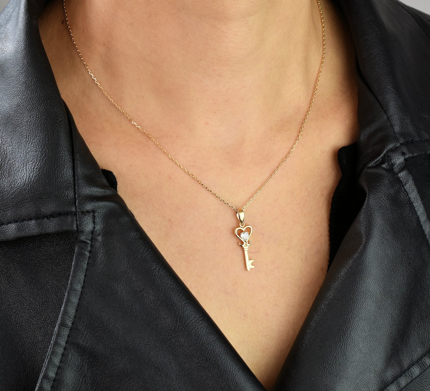 Un collier clé en plaqué or 750 3 microns résistant qui traverse le temps, pour un symbole d’amour et d’accès au cœur qui dure et vous accompagne avec romantisme scintillant et brillance préservée.