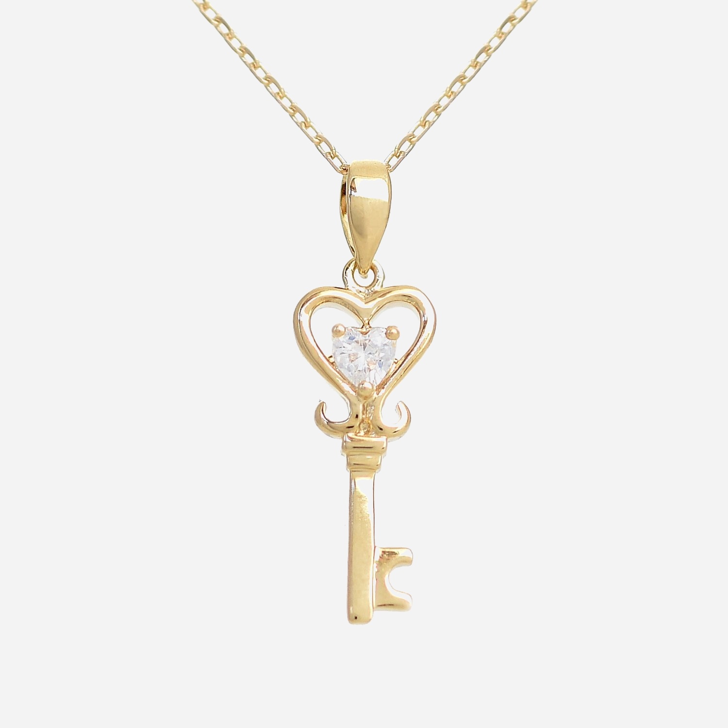 Collier clé coeur oxyde zirconium plaqué or : accès au cœur scintillant