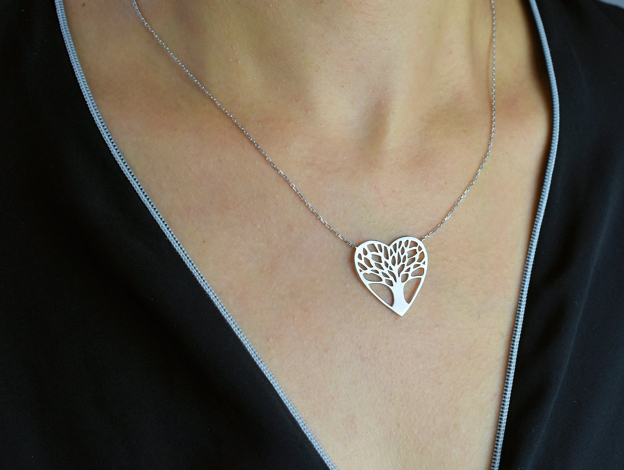 Collier coeur arbre vie argent 925 : union des symboles universels