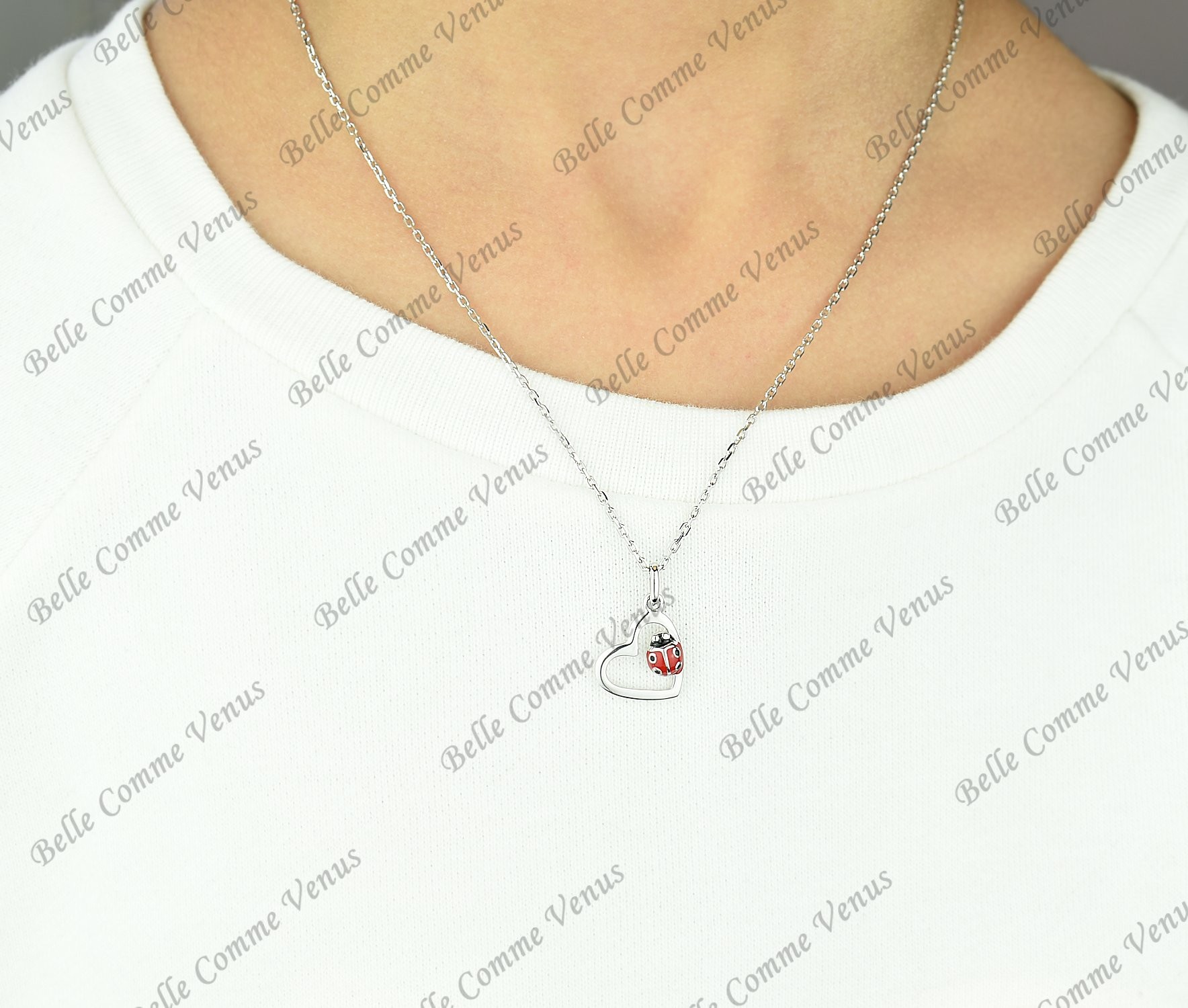Collier coeur coccinelle émail argent 925 : porte-bonheur charmant