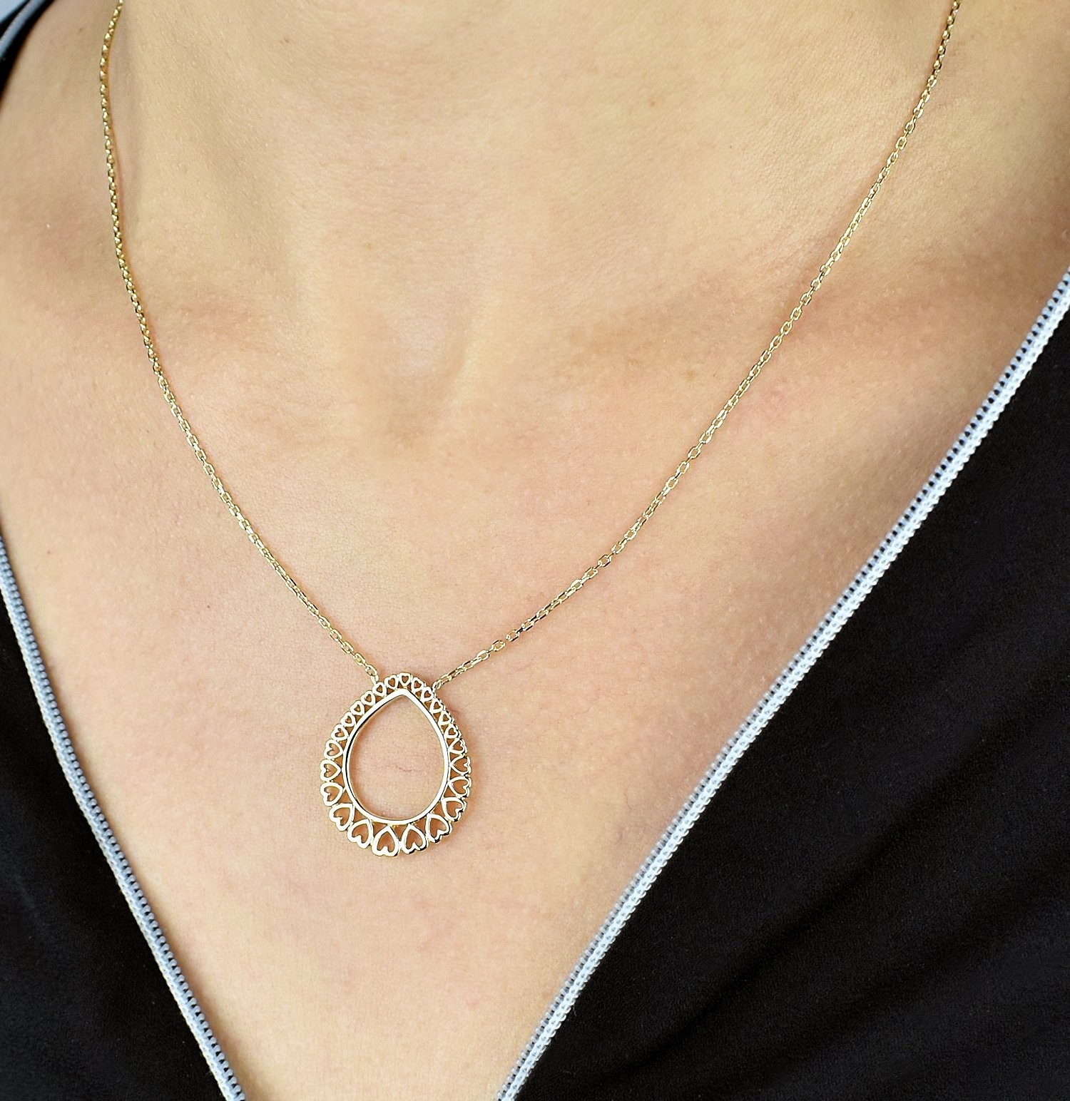 Le collier cœur plaqué or femme incarne l’essence même de l’amour et de la vie. Ce pendentif goutte de cœurs en plaqué or 750 3 microns capture la symbolique universelle du cœur dans un design raffiné et intemporel.