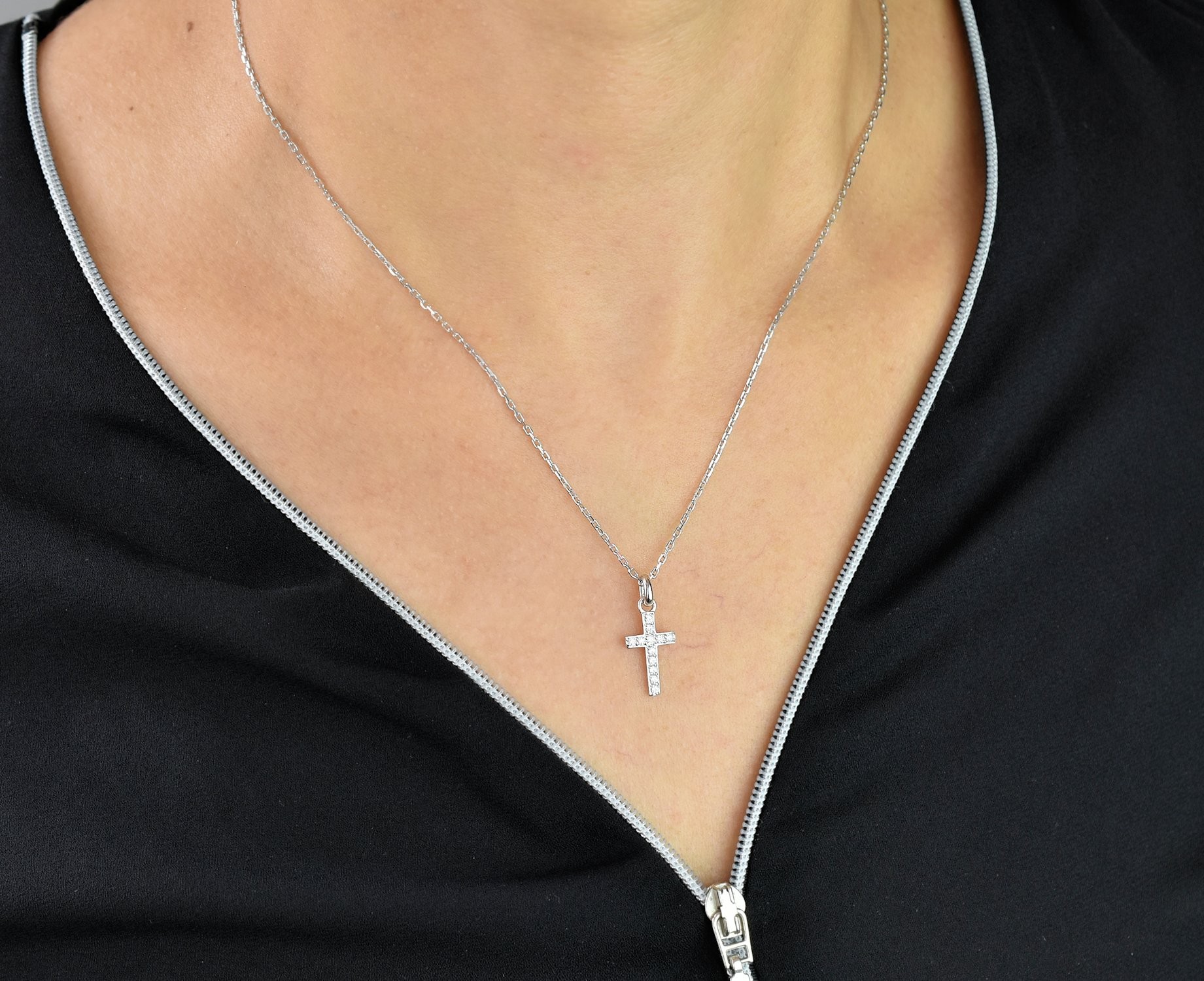 Collier croix argent 925 oxyde zirconium : amour et spiritualité scintillants