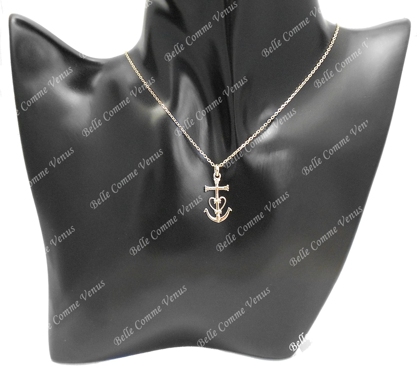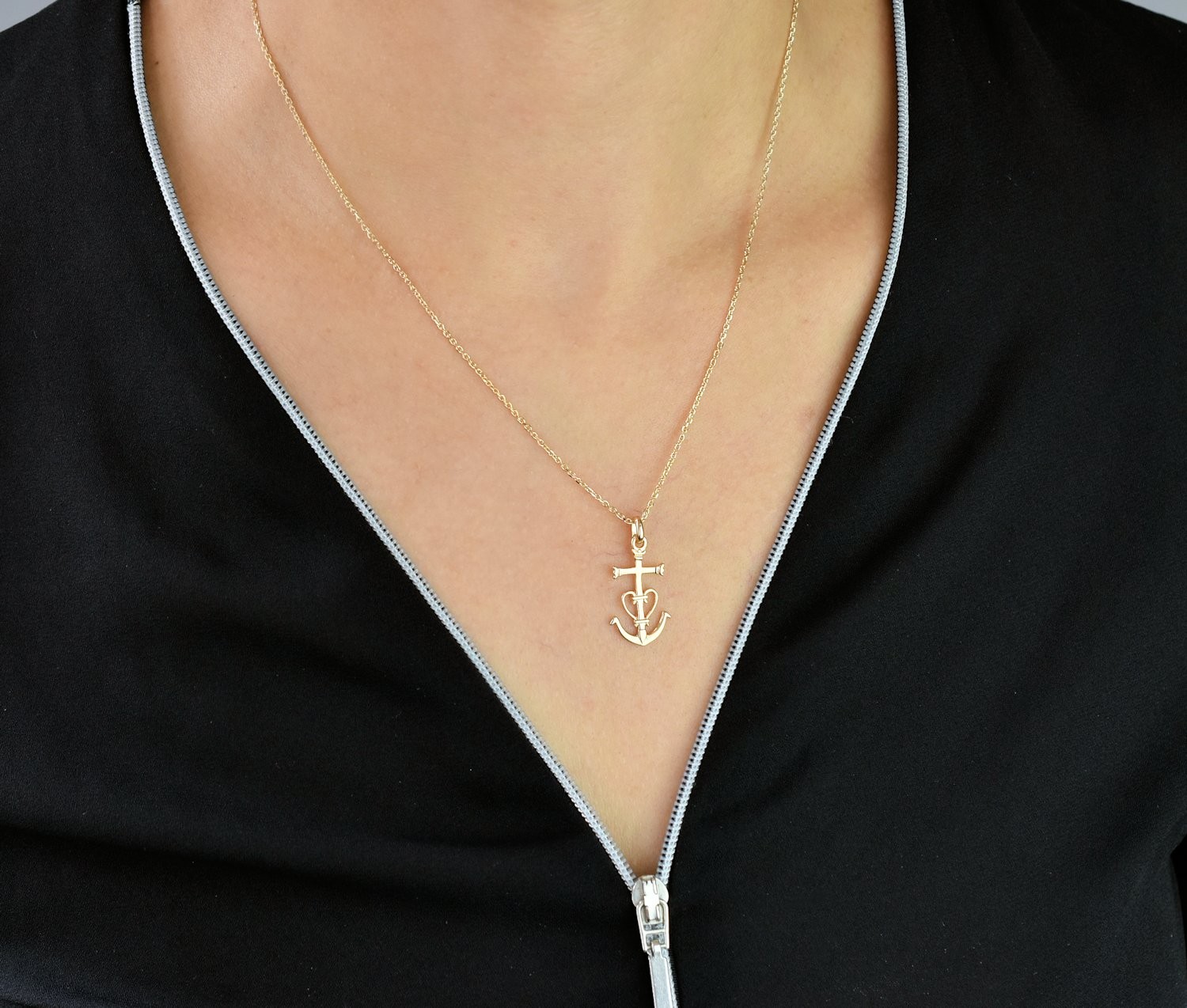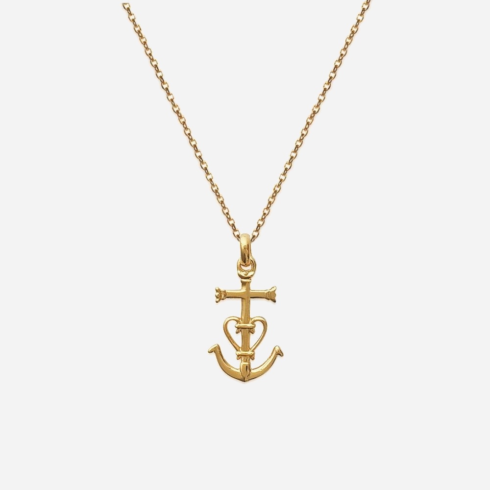 - Pendentif croix de Camargue formé d'une croix latine en forme de tridents, d'une ancre et d'un coeur : 2 cm * 1 cm