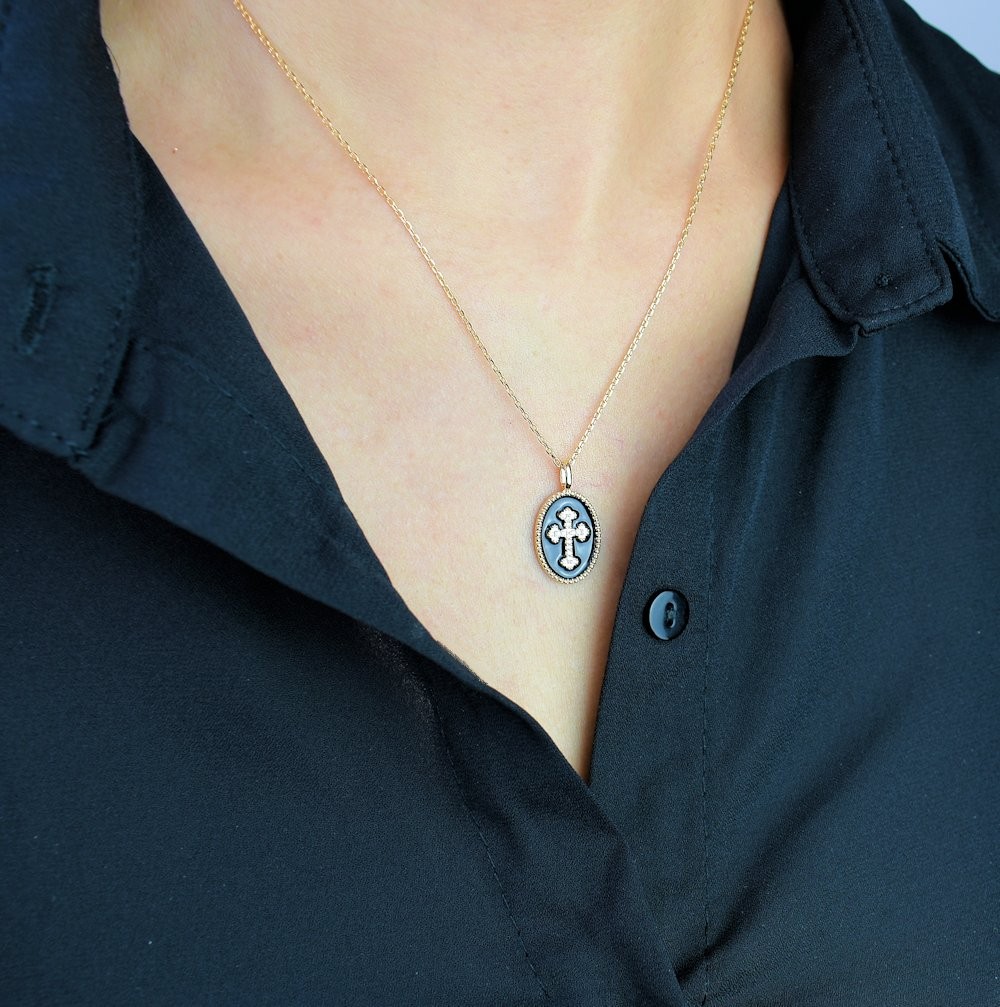 La croix ornée de fleurs de lys royales est rehaussée de zirconiums étincelants et d’émail noir contrasté qui créent une esthétique sophistiquée. Le plaqué or 3 microns garantit un éclat doré durable à ce symbole qui allie spiritualité, noblesse et caractère.