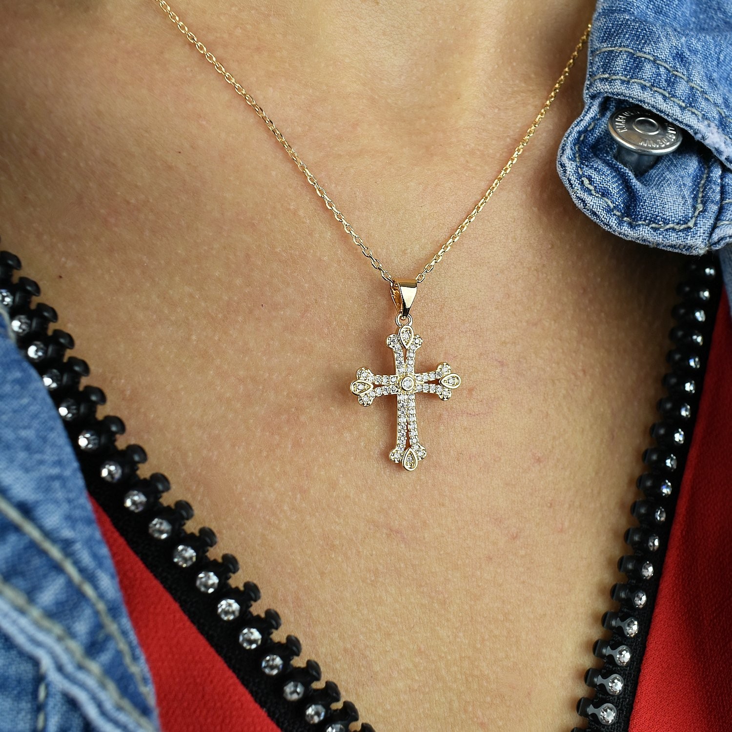 La croix sertie d'oxydes de zirconium mesure 2.2 cm * 1.8 cm, offrant un éclat étincelant qui attire le regard.