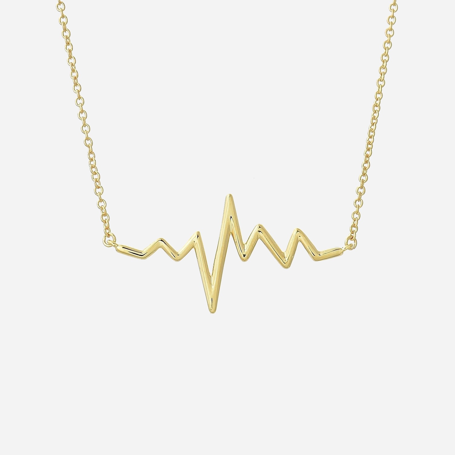 Le collier électrocardiogramme rythme du coeur plaqué or 750 célèbre le symbole universel de la vie avec design moderne et original. Le tracé électrocardiogramme évoque battement du cœur, passion et vitalité, créant un bijou qui incarne l’énergie de vivre avec raffinement contemporain doré et signification profonde inspirante.