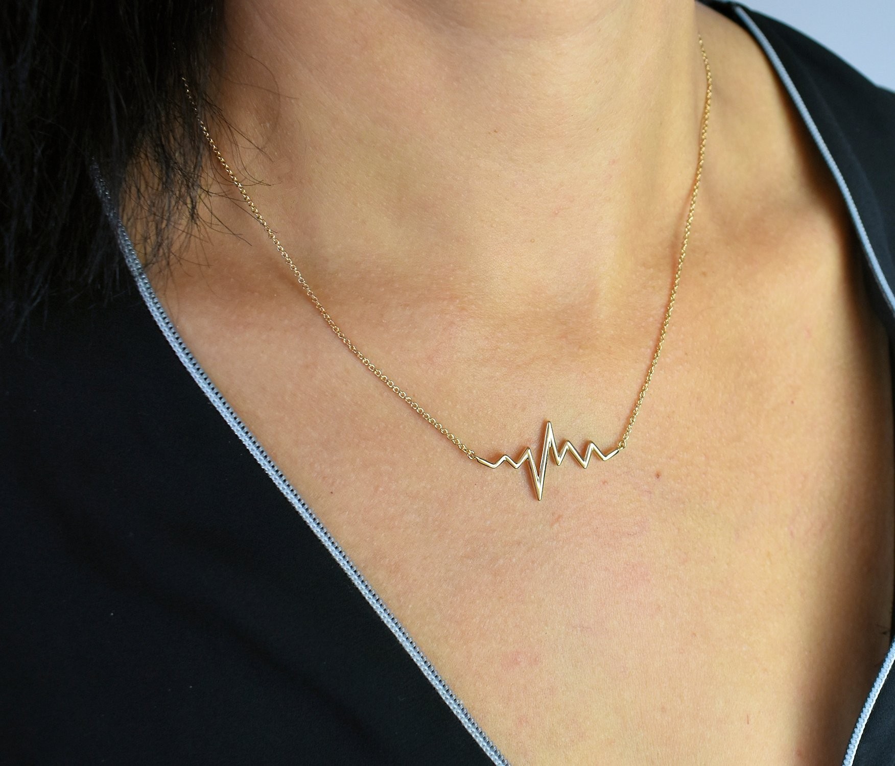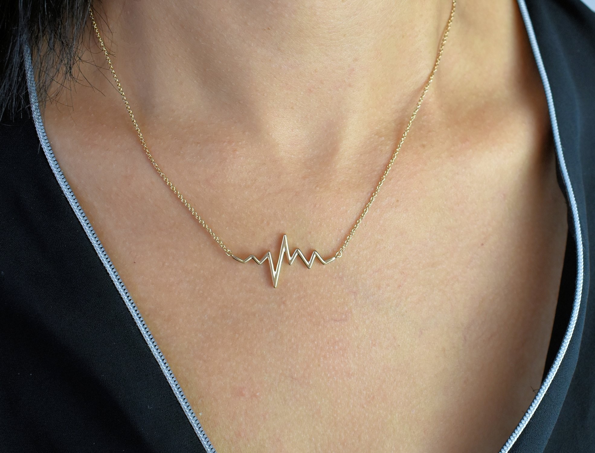 Collier électrocardiogramme rythme coeur plaqué or : célébrez la vie