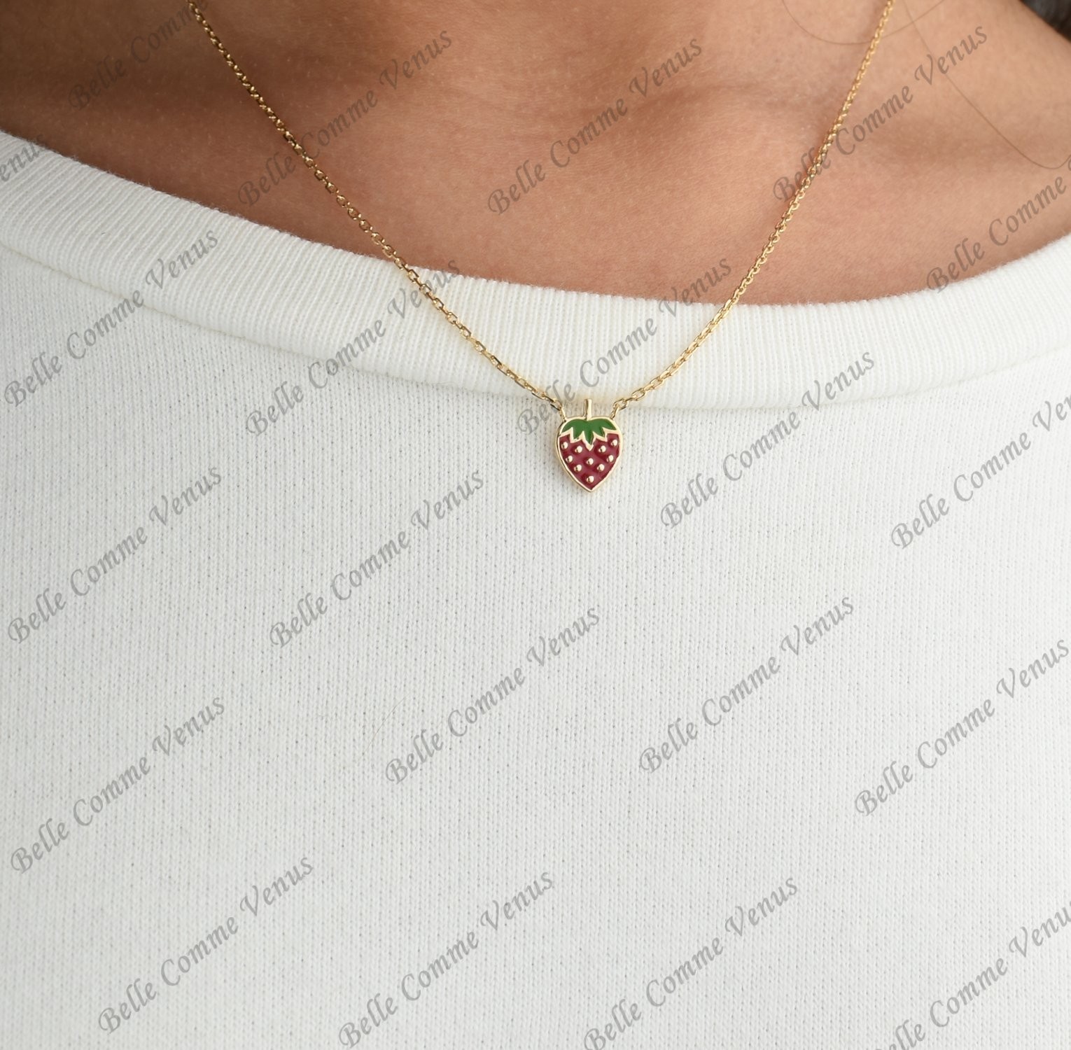 La fraise émail coloré crée un bijou tendre et joyeux, symbole de gourmandise et de fraîcheur parfait pour l’univers enfantin. Le plaqué or 750 3 microns garantit qualité et durabilité adaptées aux petits. Un collier fraise charmant qui accompagne les enfants avec gaieté, douceur et délicatesse gourmande au quotidien.