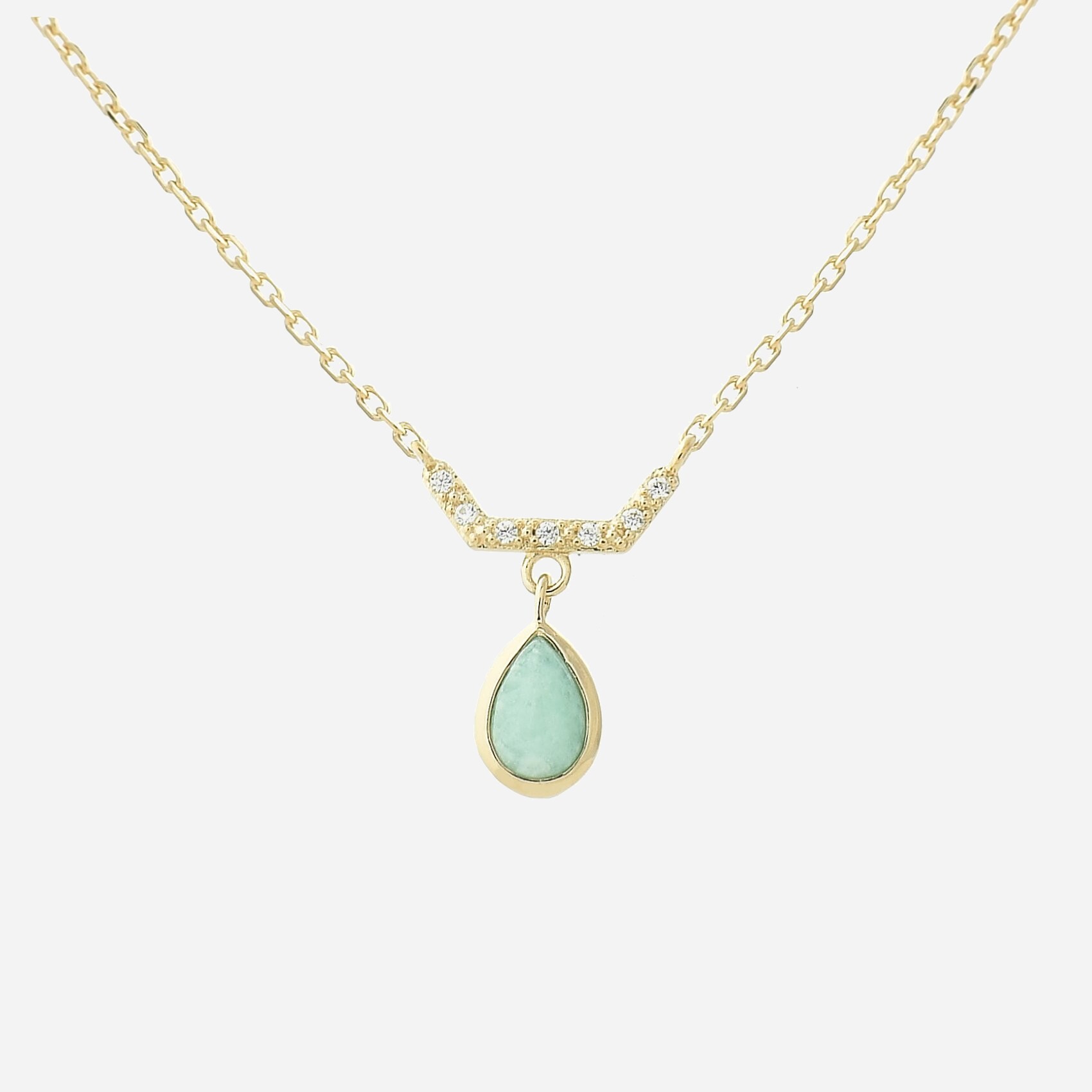 Un collier goutte amazonite plaqué or aux vertus harmonisantes