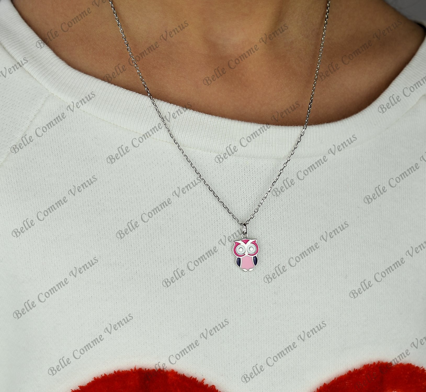 L’argent 925 rhodié est hypoallergénique et parfaitement adapté aux enfants. L’émail coloré donne vie au hibou attachant avec fantaisie. Un collier qui traverse les années sans ternir, accompagnant l’enfance avec douceur, sécurité et finition joaillière précieuse pour un compagnon fidèle.