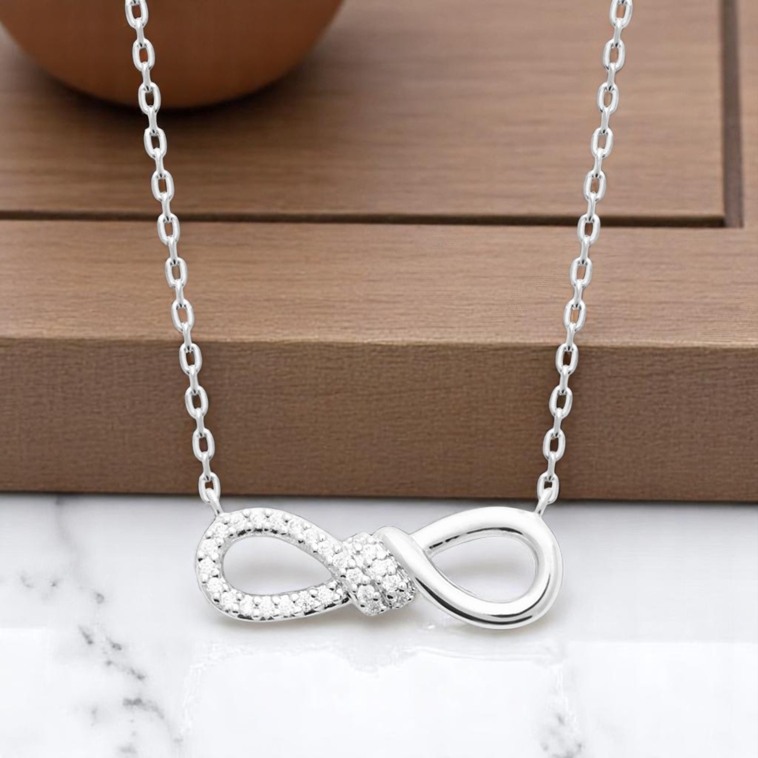 Le symbole de l’infini rencontre l’éclat du diamant. Ce collier infini argent rhodié serti d’oxydes de zirconium associe la brillance étincelante des pierres à la symbolique puissante de l’amour éternel et de l’harmonie. Ne trouvez-vous pas captivant de porter un bijou qui représente l’éternité, l’amour sans fin et l’harmonie, ajoutant ainsi une touche de sophistication à votre style ?
