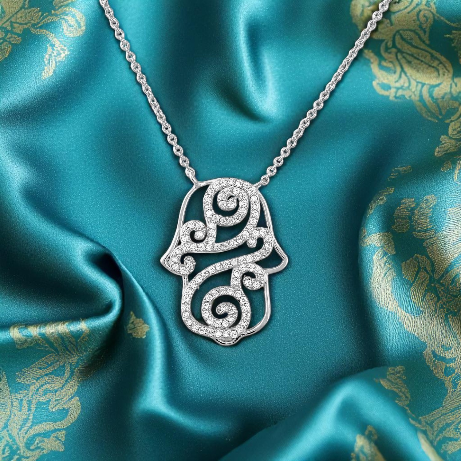 Le collier main de Fatma argent 925 incarne un symbole protecteur ancestral porté à travers toutes les cultures et religions. Appelée également Khamsa ou main de Myriam, cette main de Fatma ornée d’arabesques d’oxydes de zirconium scintillants apporte protection et élégance à votre cou.