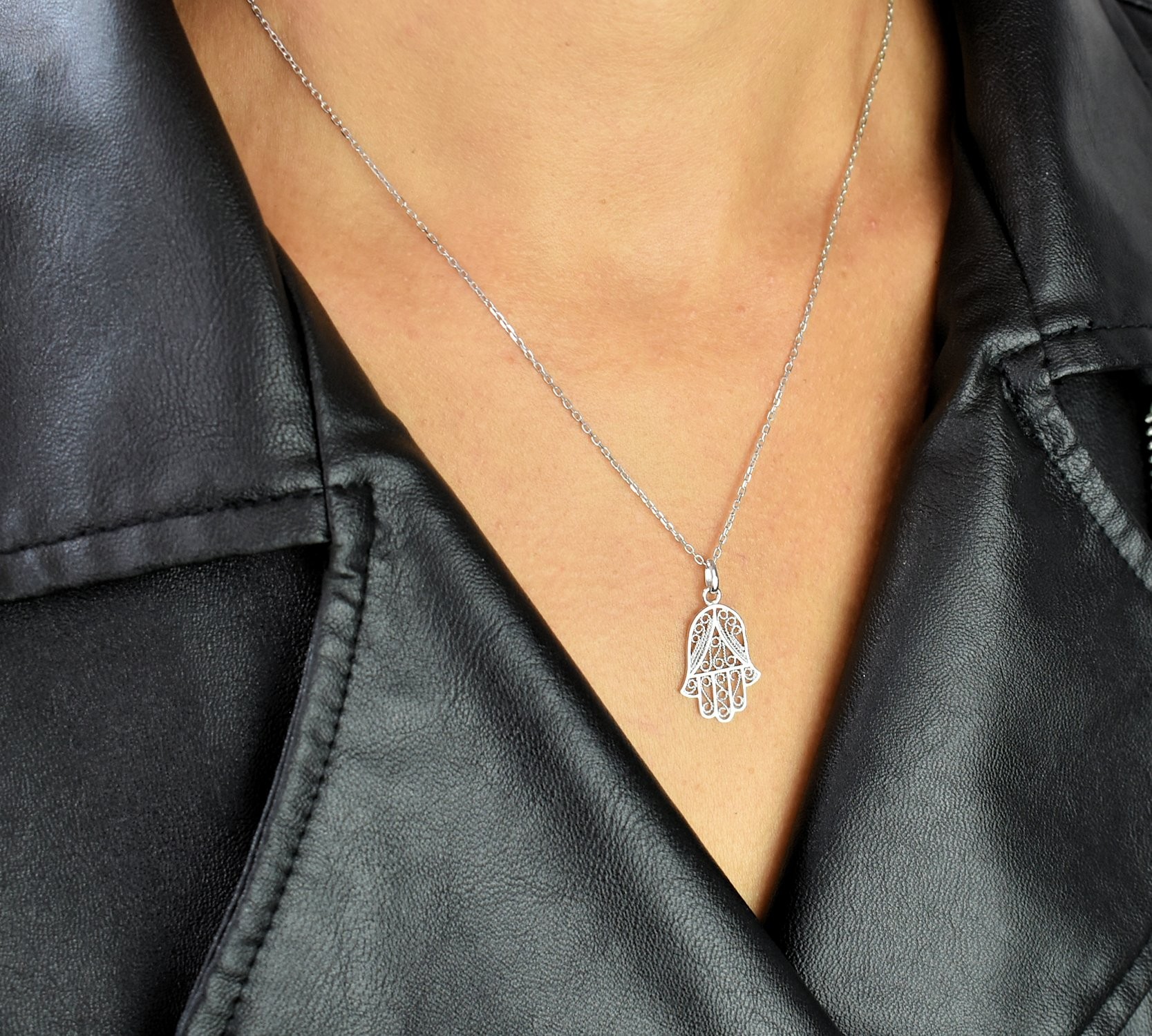 Ce collier main fatma conjugue spiritualité millénaire et raffinement contemporain. Le travail ciselé apporte texture artisanale et profondeur au symbole tandis que l’argent 925 rhodié garantit éclat résistant et protection contre l’oxydation. Un bijou protecteur qui célèbre l’artisanat avec délicatesse et brillance préservée.
