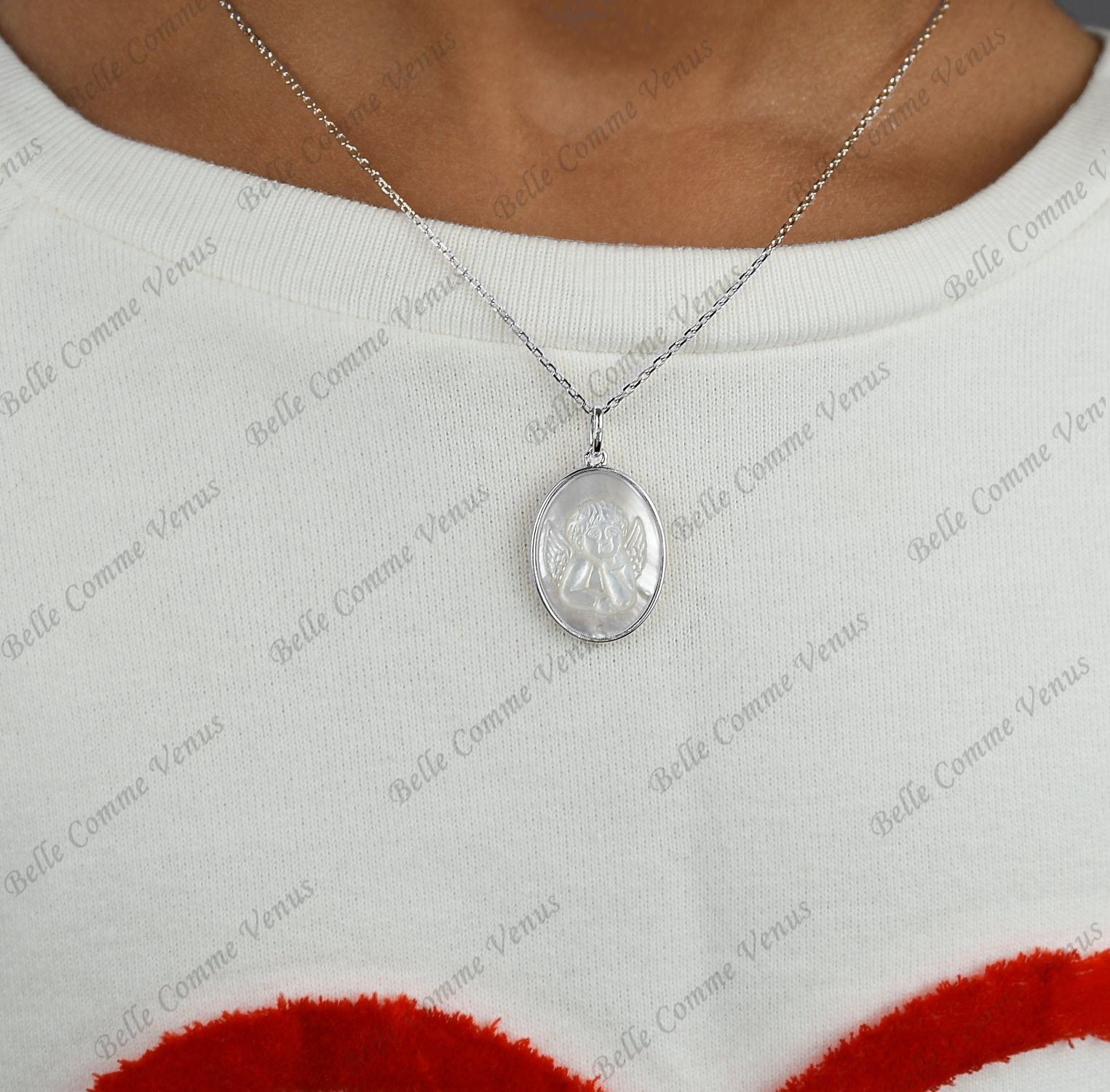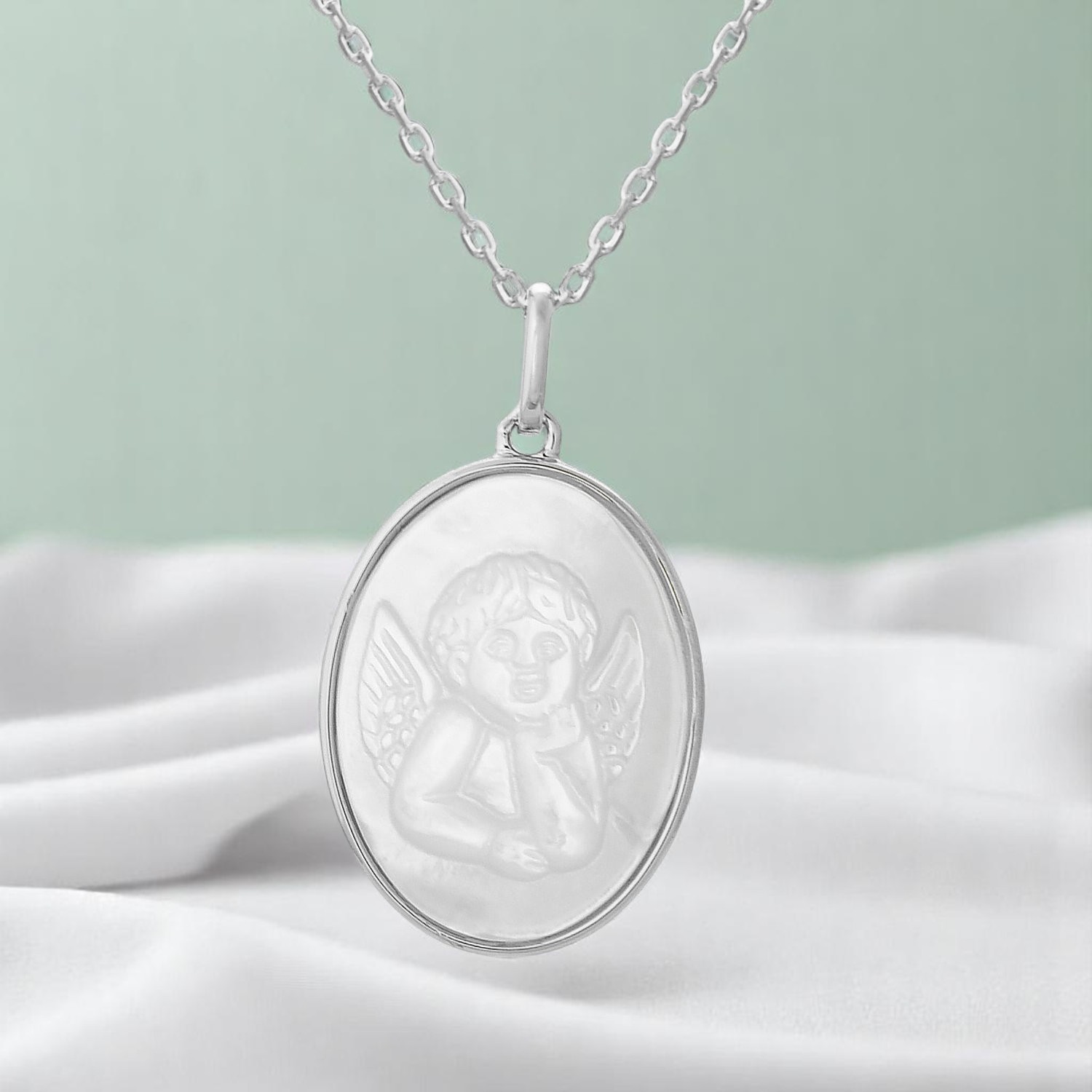 Sa couleur irisée fascine depuis la nuit des temps. De tous temps, à travers toutes les cultures et religions, on retrouve des bijoux destinés à protéger ceux qui les portent. Ce collier médaille ange argent 925 rhodié avec nacre ovale célèbre le baptême avec douceur spirituelle. Un bijou qui allie protection angélique, apaisement et beauté naturelle avec raffinement sacré.