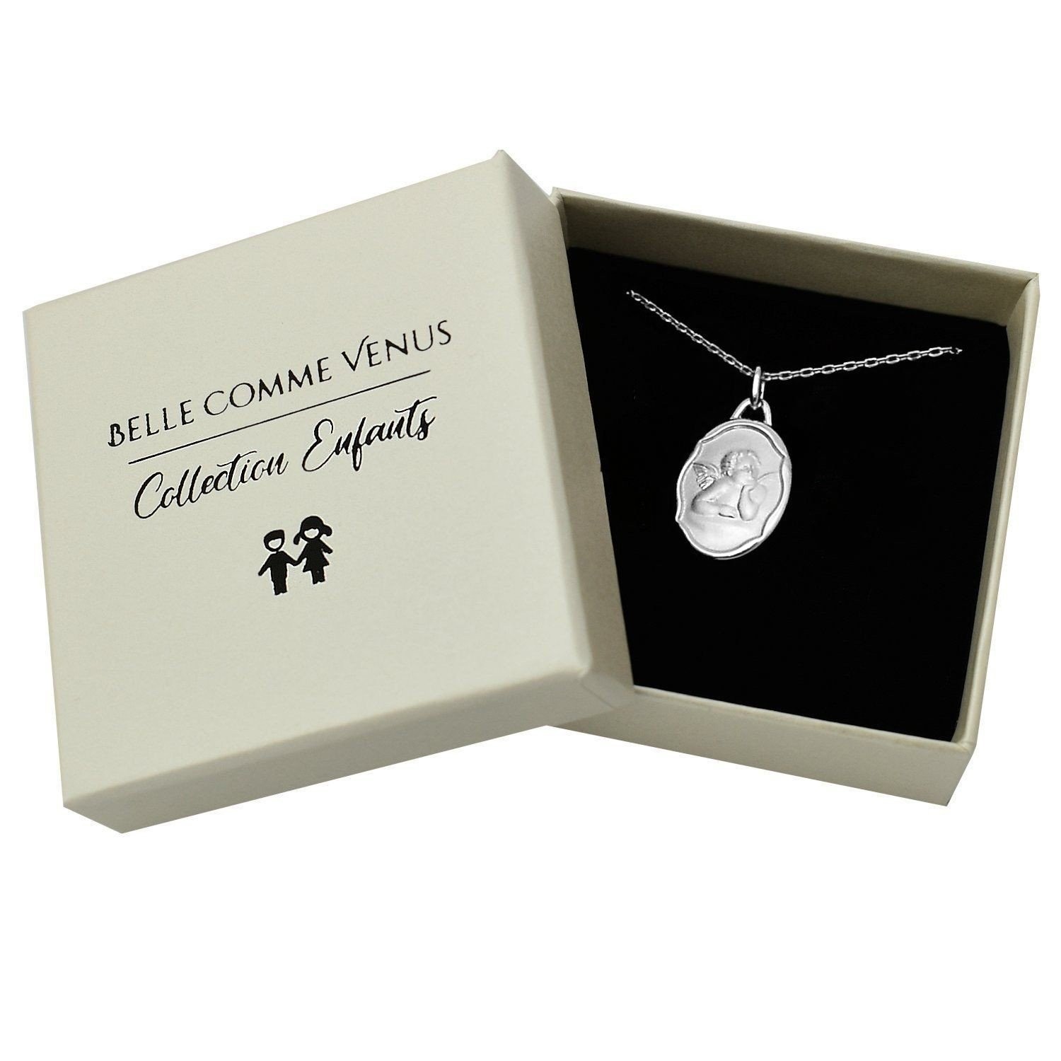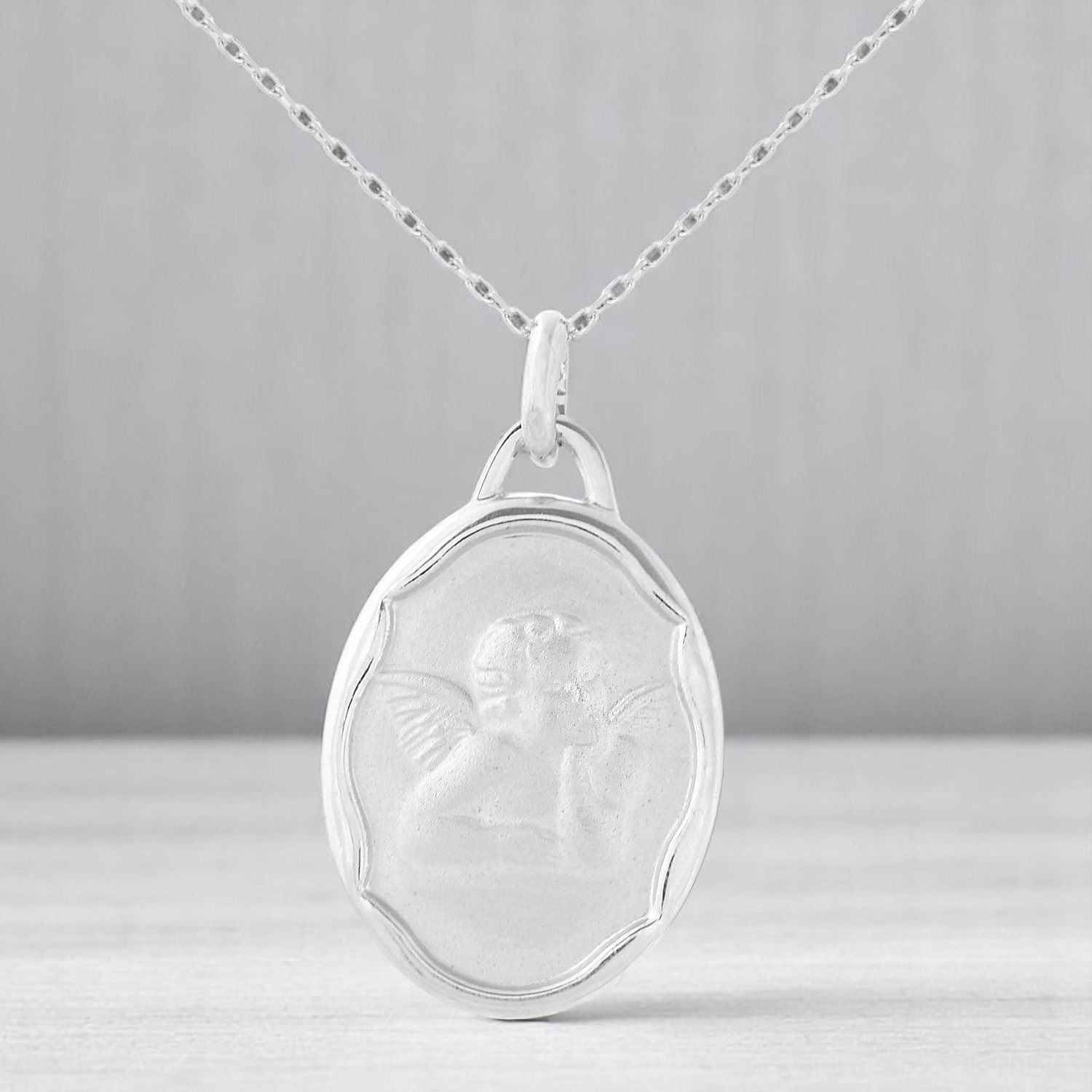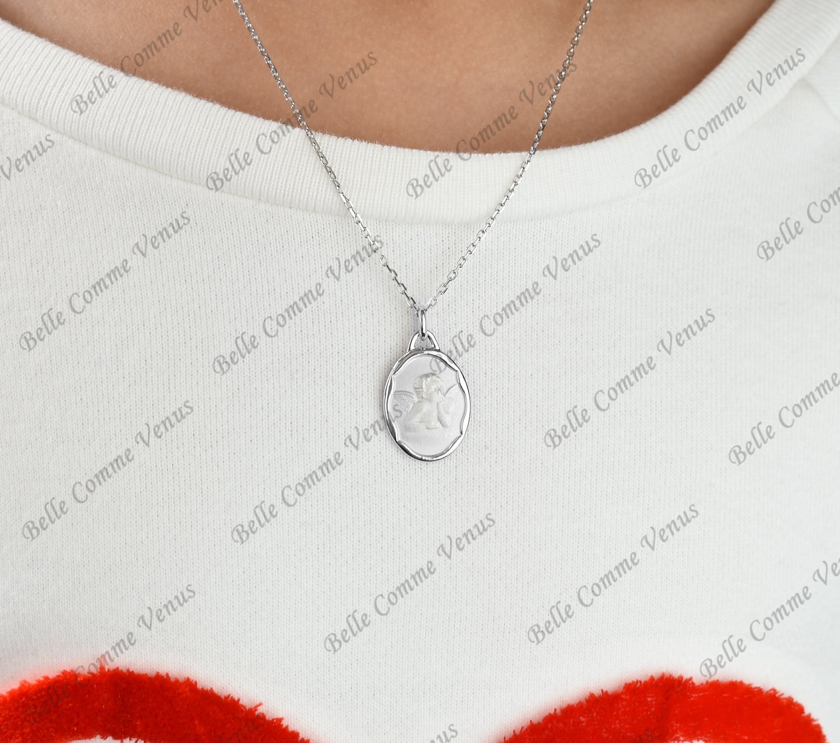 Collier médaille ange baptême enfant argent 925 : protection céleste sacrée
