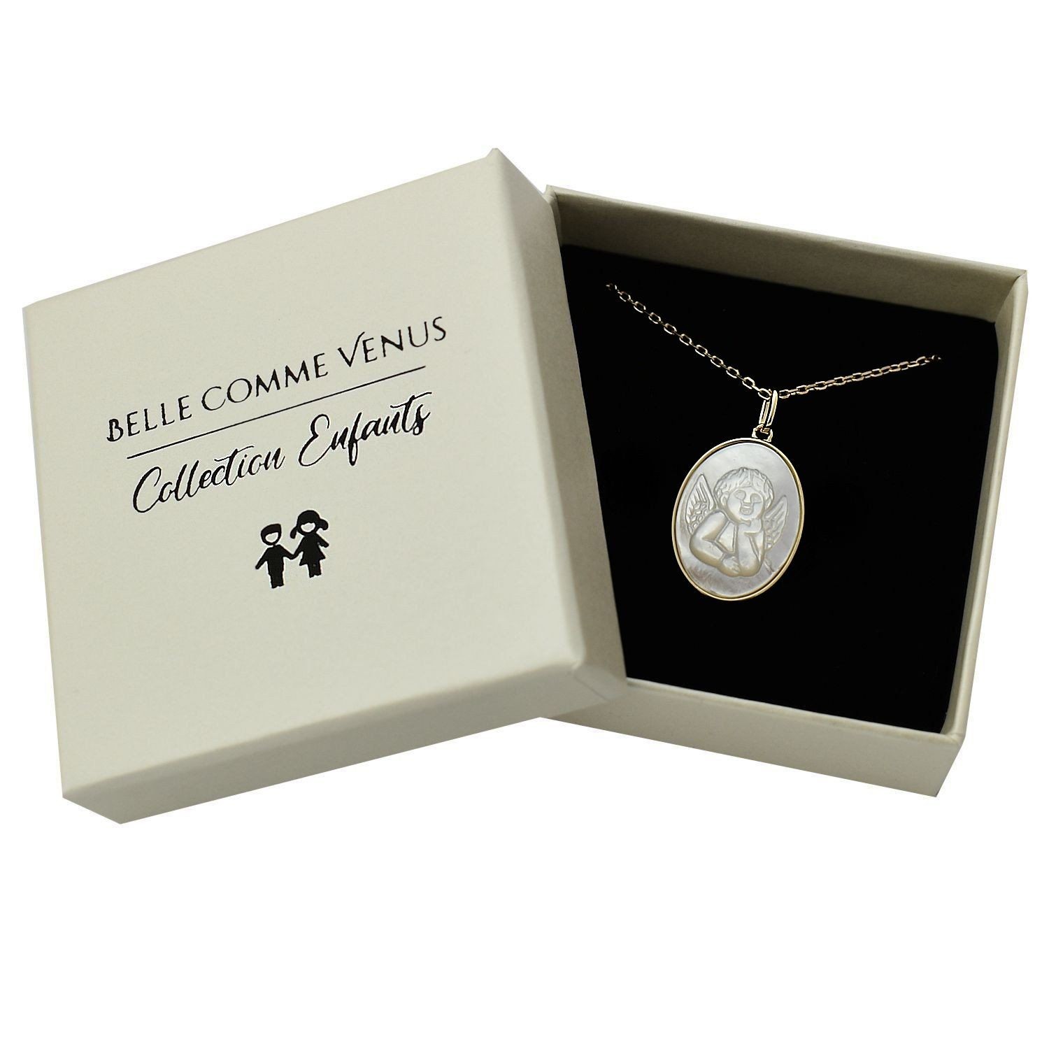 Le collier médaille ange baptême nacre enfant plaqué or 750 célèbre un moment spirituel précieux avec douceur nacrée. La médaille ovale de nacre ornée d’un ange évoque protection céleste et pureté, créant un bijou de baptême qui sublime votre enfant avec raffinement doré délicat et symbolique spirituelle intemporelle protectrice.