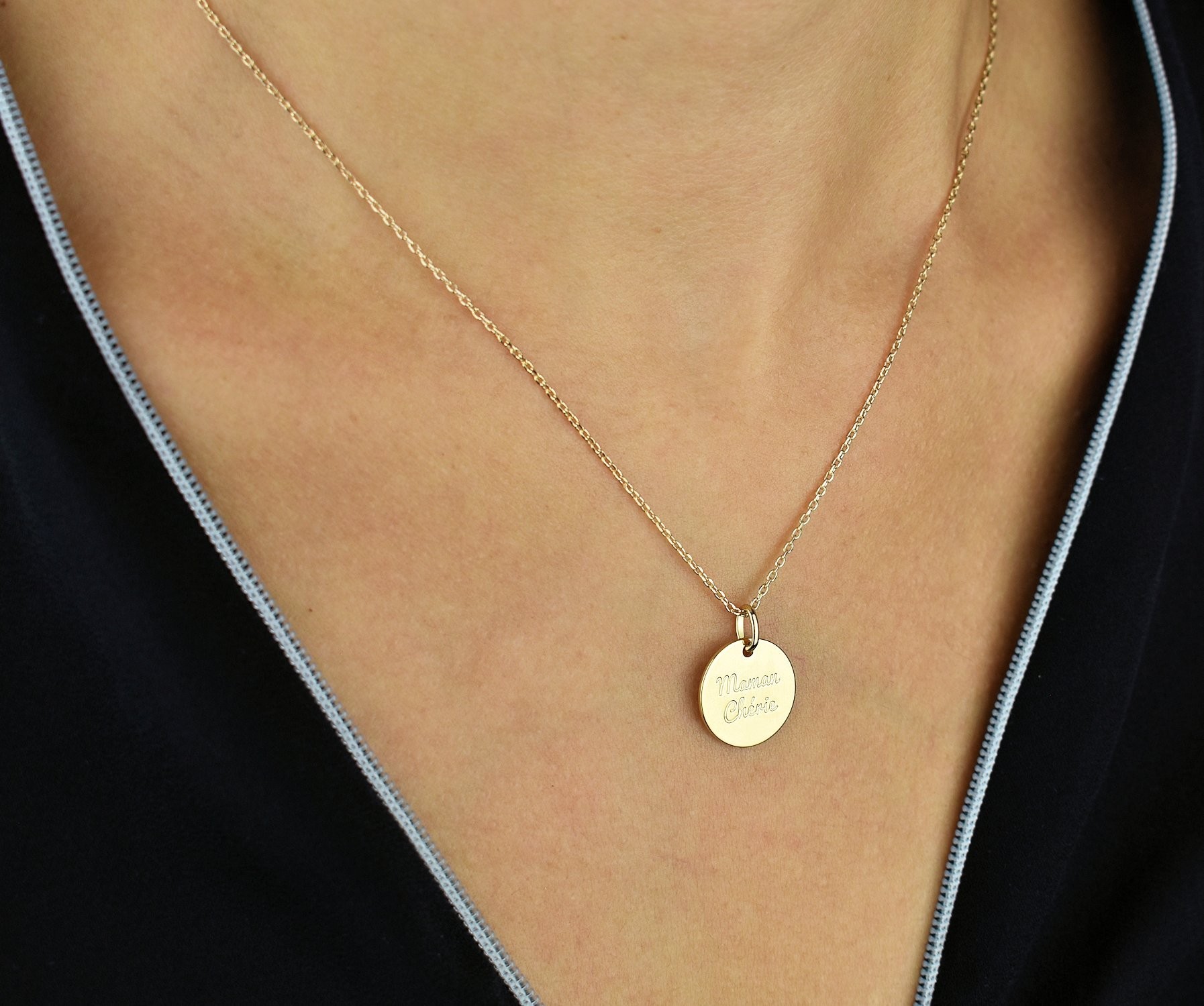 Un collier médaille maman chérie plaqué or chargé d’amour