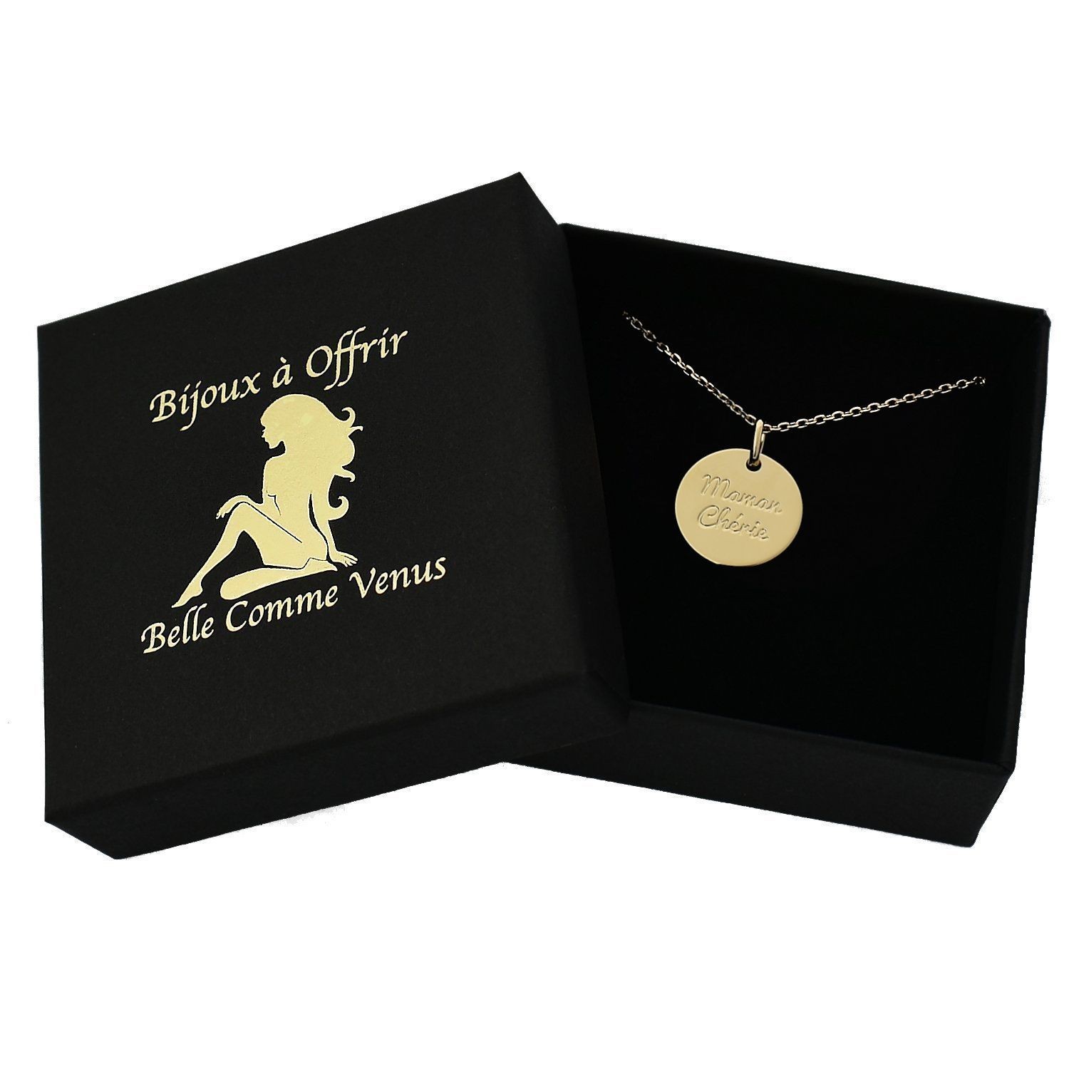 Parce qu’elle transforme des mots simples mais puissants en bijou éternel. « Maman Chérie » gravé devient cette déclaration permanente d’amour qui se porte près du cœur. Offert, c’est le cadeau qui touche au plus profond, celui qui dit « tu es ma maman chérie » avec une éloquence que les mots seuls ne peuvent atteindre. Le plaqué or enveloppe cette promesse filiale d’une chaleur dorée qui traverse les années. Porté quotidiennement, il devient ce rappel constant de l’amour inconditionnel. C’est le bijou des liens qui ne se brisent jamais, la médaille qui célèbre la plus belle des relations : celle d’une mère adorée.