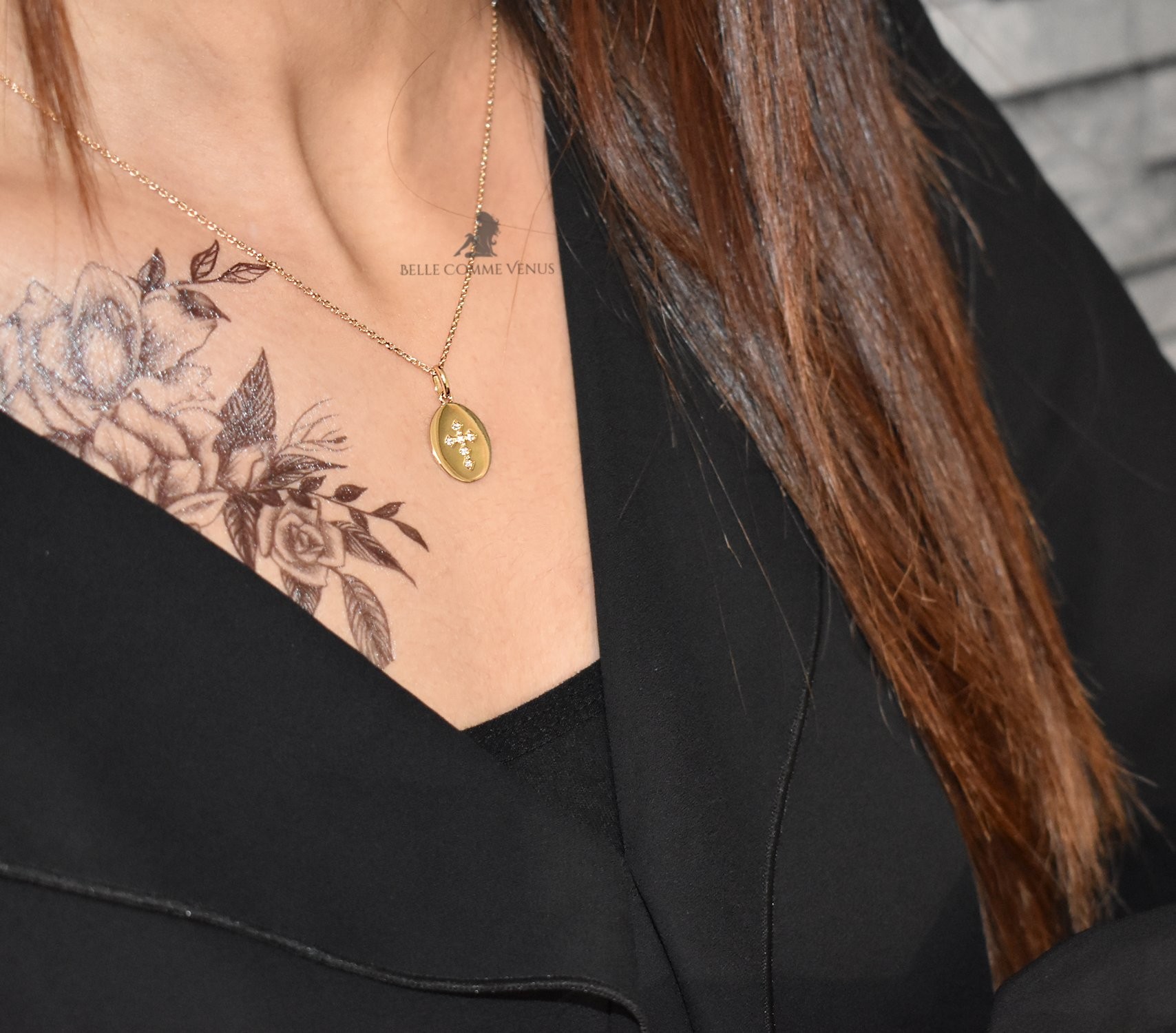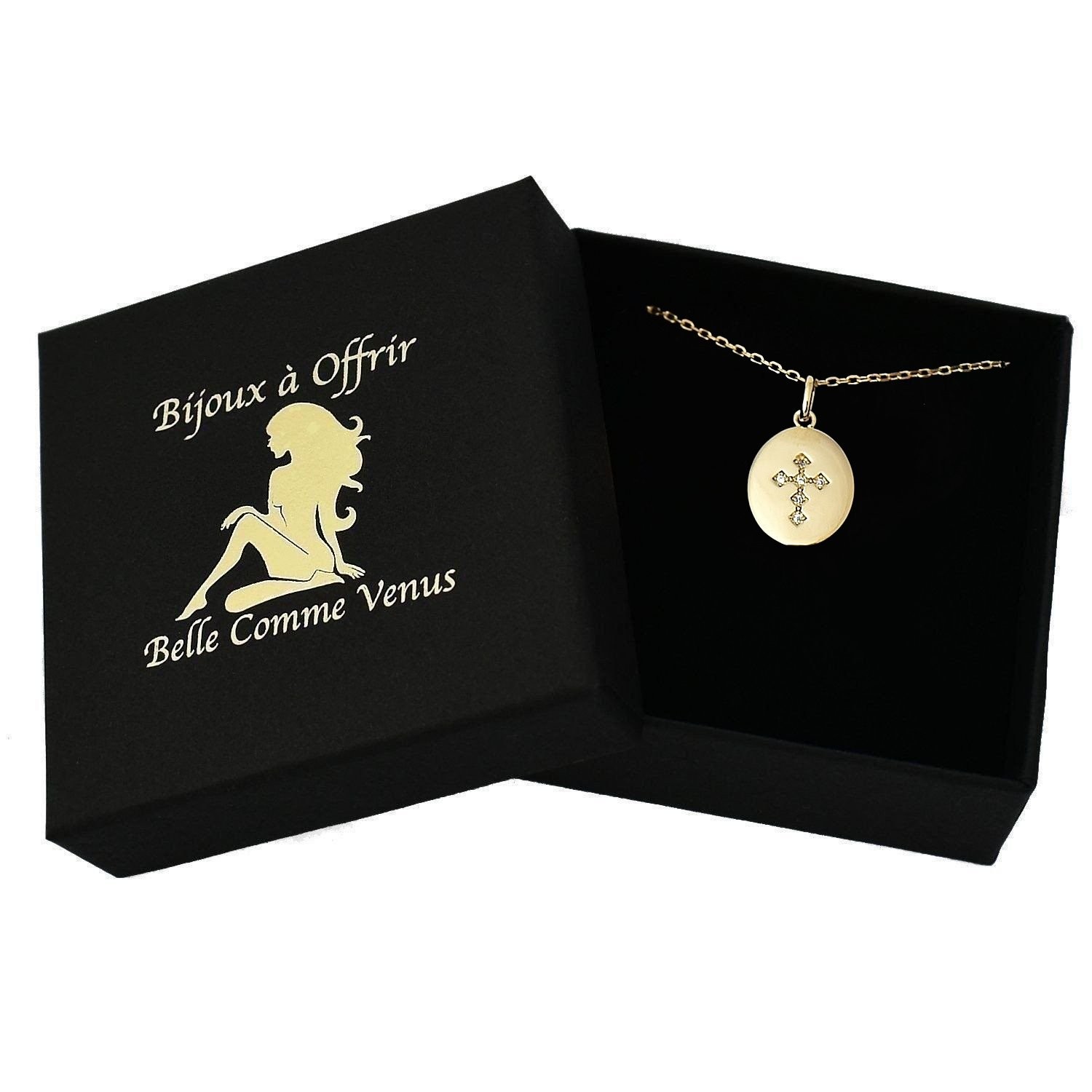 Le collier médaille ovale croix oxyde zirconium plaqué or 750 célèbre un symbole spirituel intemporel avec éclat doré scintillant. La médaille ovale ornée d’une croix sertie d’oxyde de zirconium évoque foi, protection et spiritualité, créant un bijou qui sublime votre cou avec brillance lumineuse et raffinement sacré élégant.