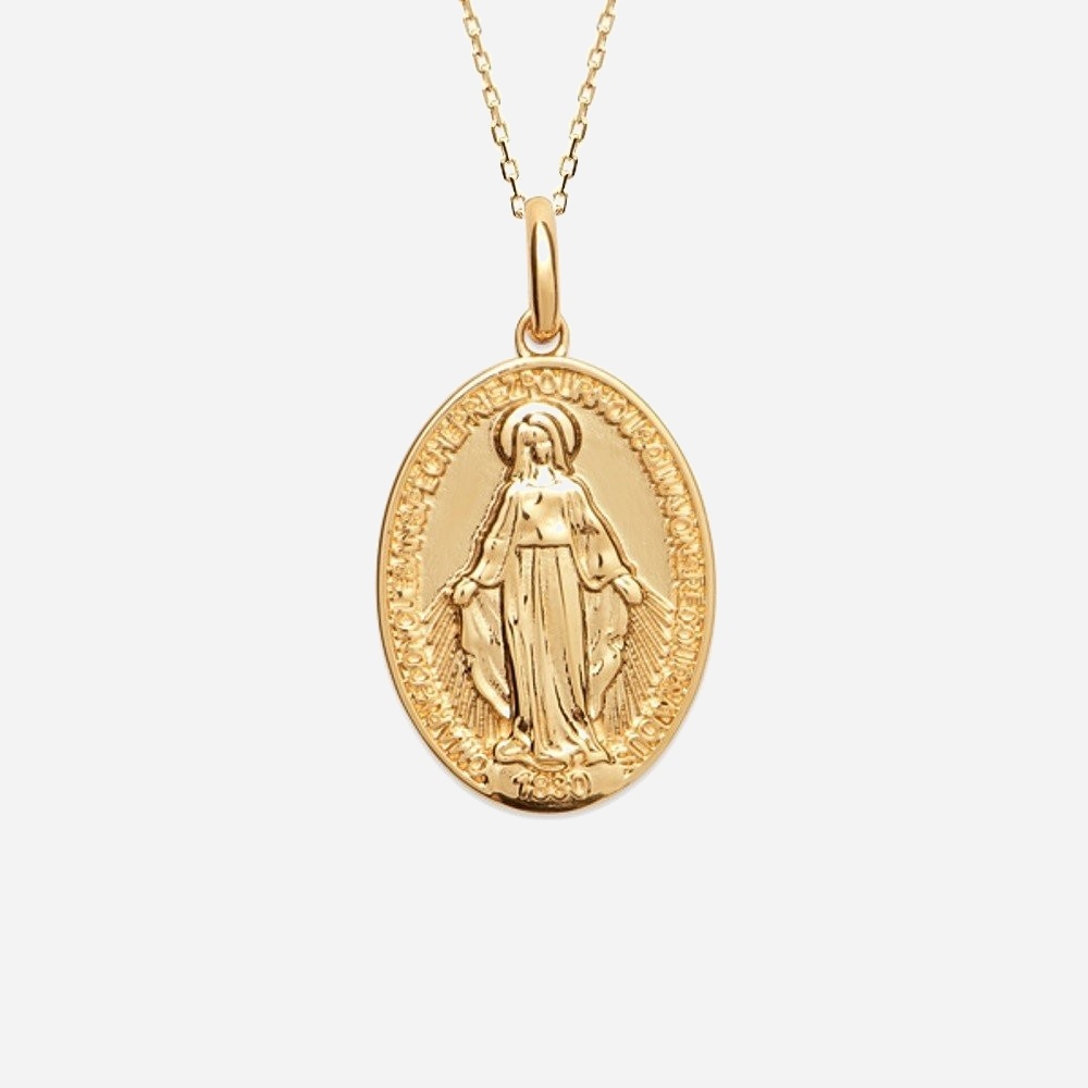Le collier médaille vierge miraculeuse plaqué or célèbre la foi et la protection divine avec élégance. Cette médaille Vierge Miraculeuse en plaqué or 750 3 microns capture l’essence de la dévotion et de la protection spirituelle dans un design religieux raffiné.