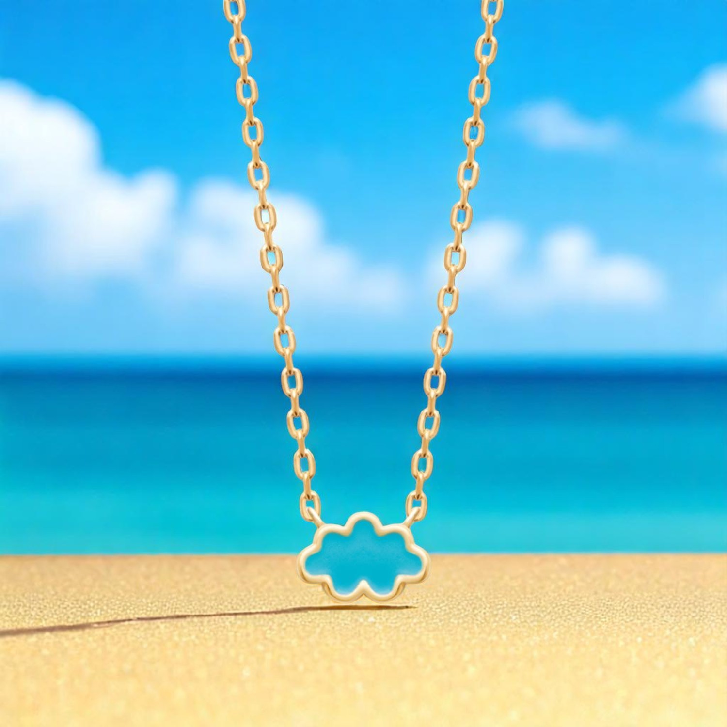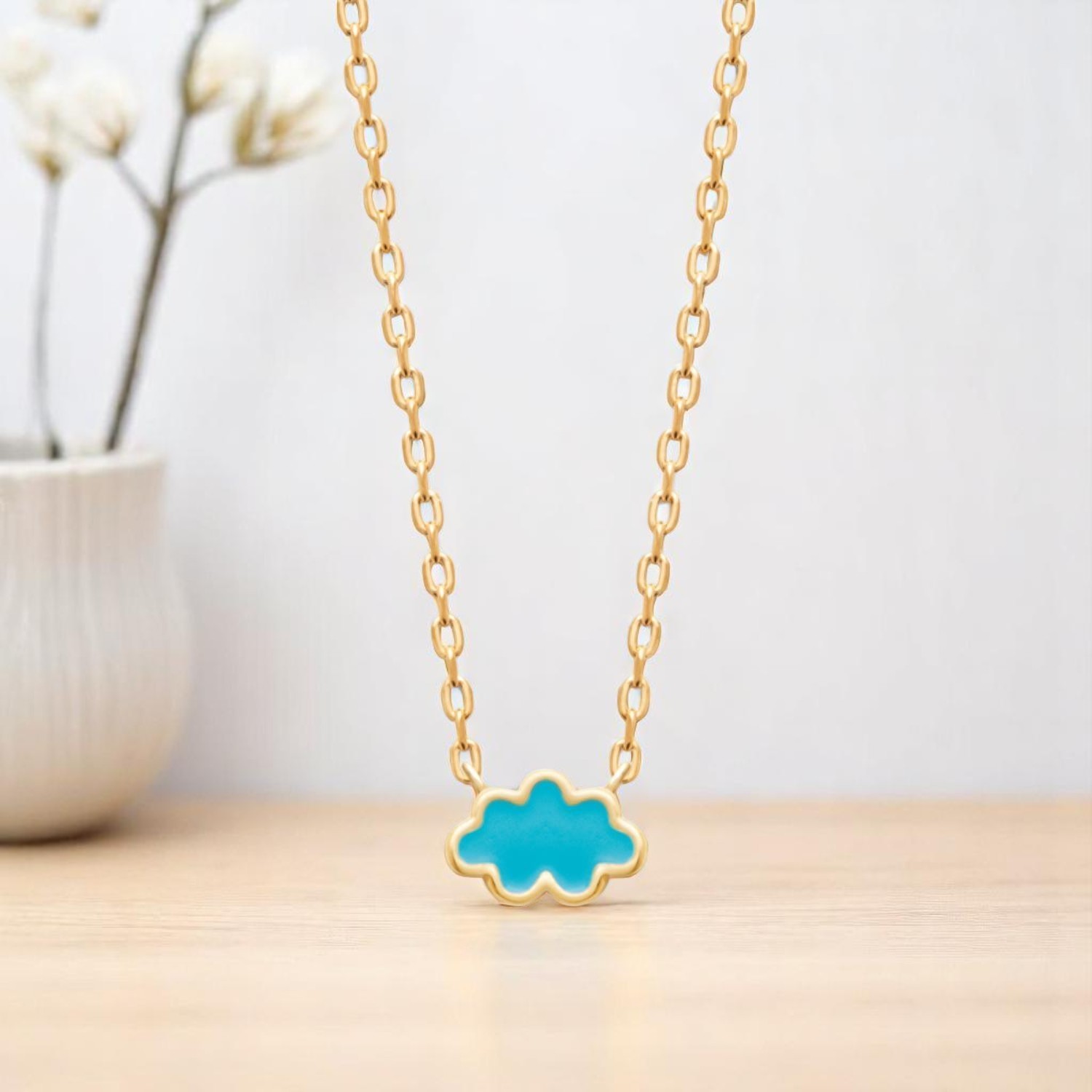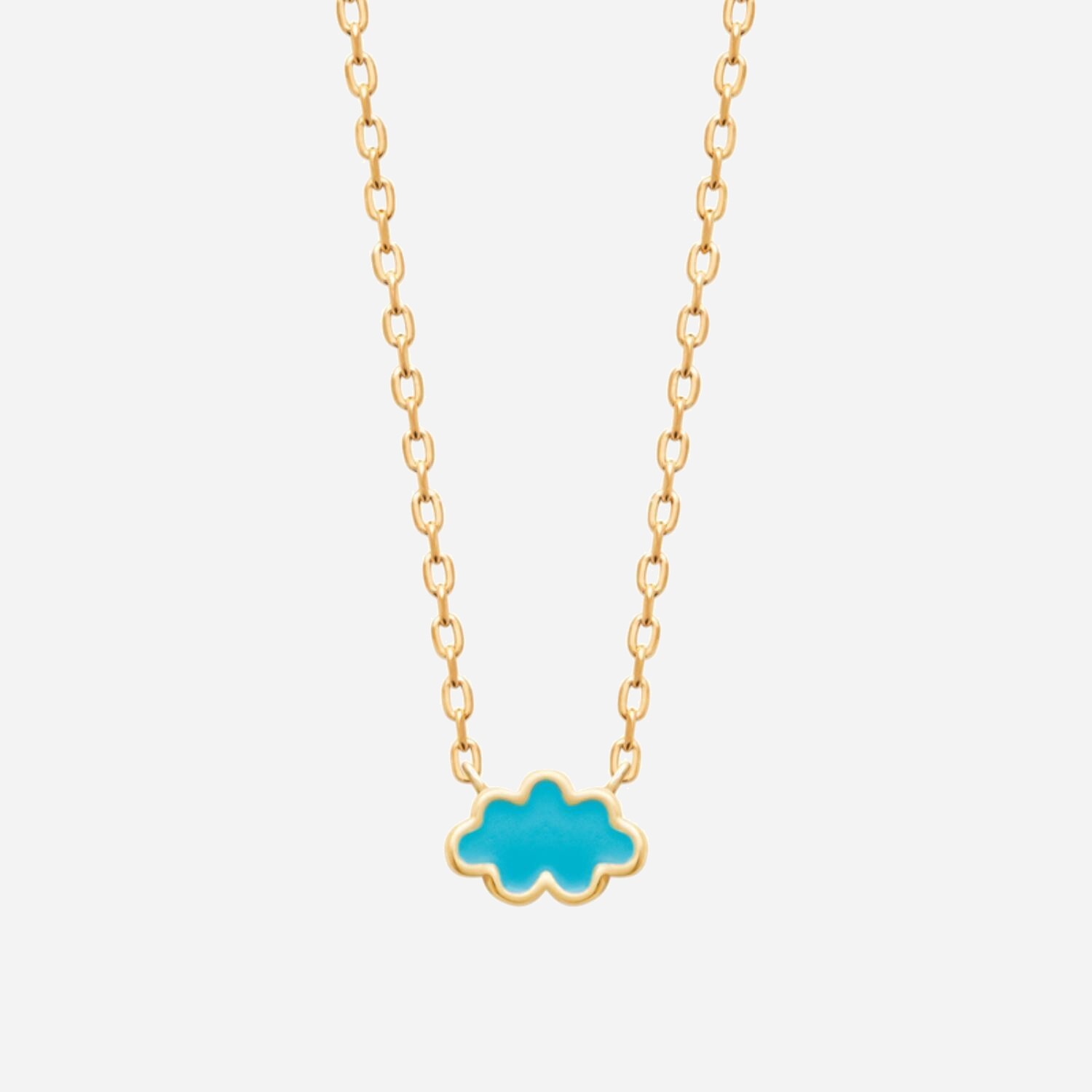 Le collier enfant nuage émail coloré bleu plaqué OR 750 3 microns évoque la douceur et la rêverie.