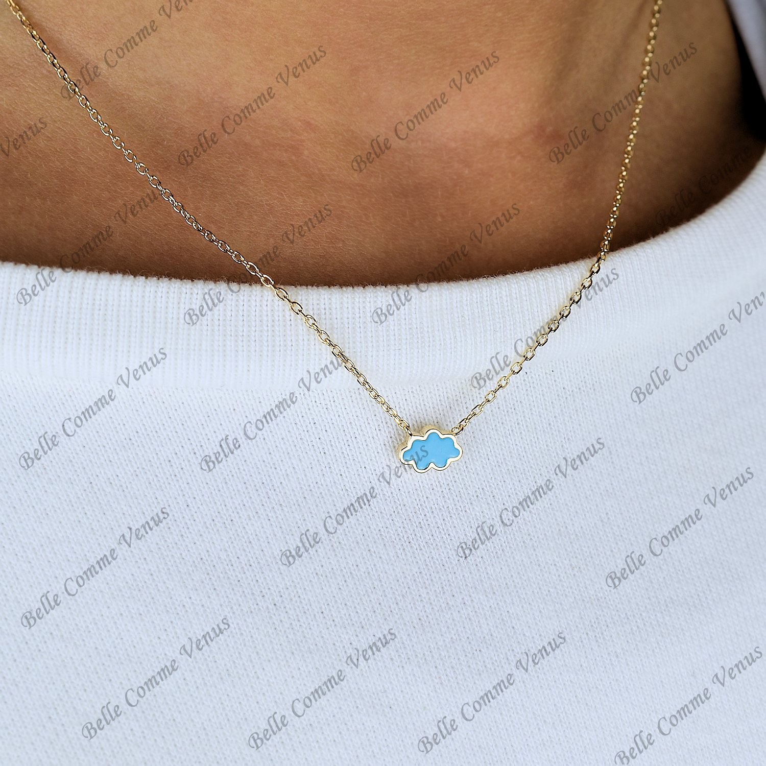 Collier nuage plaqué or émail bleu enfant : douceur et rêverie céleste
