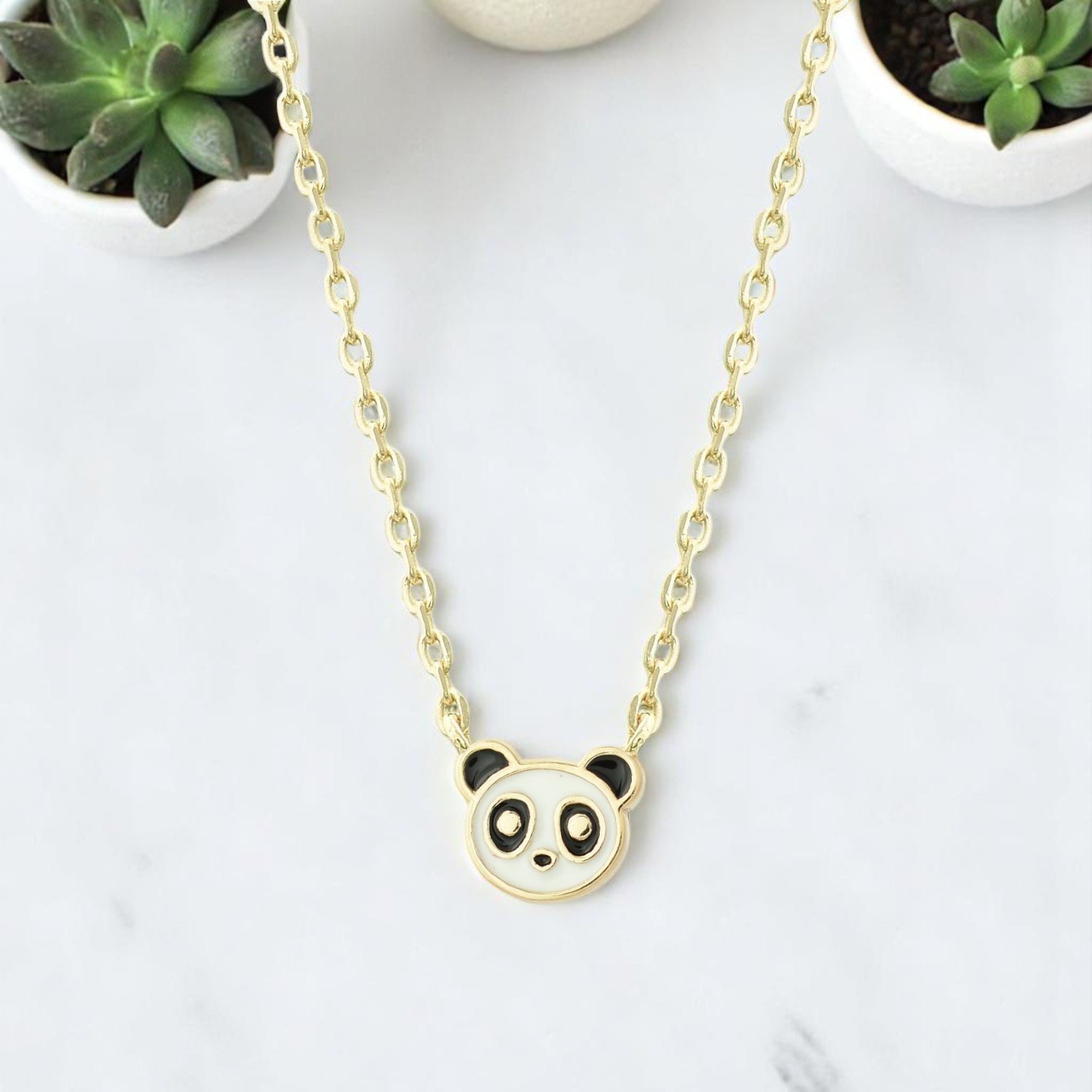 Collier panda plaqué or émail blanc noir enfant : enchanteur pour petits et grands