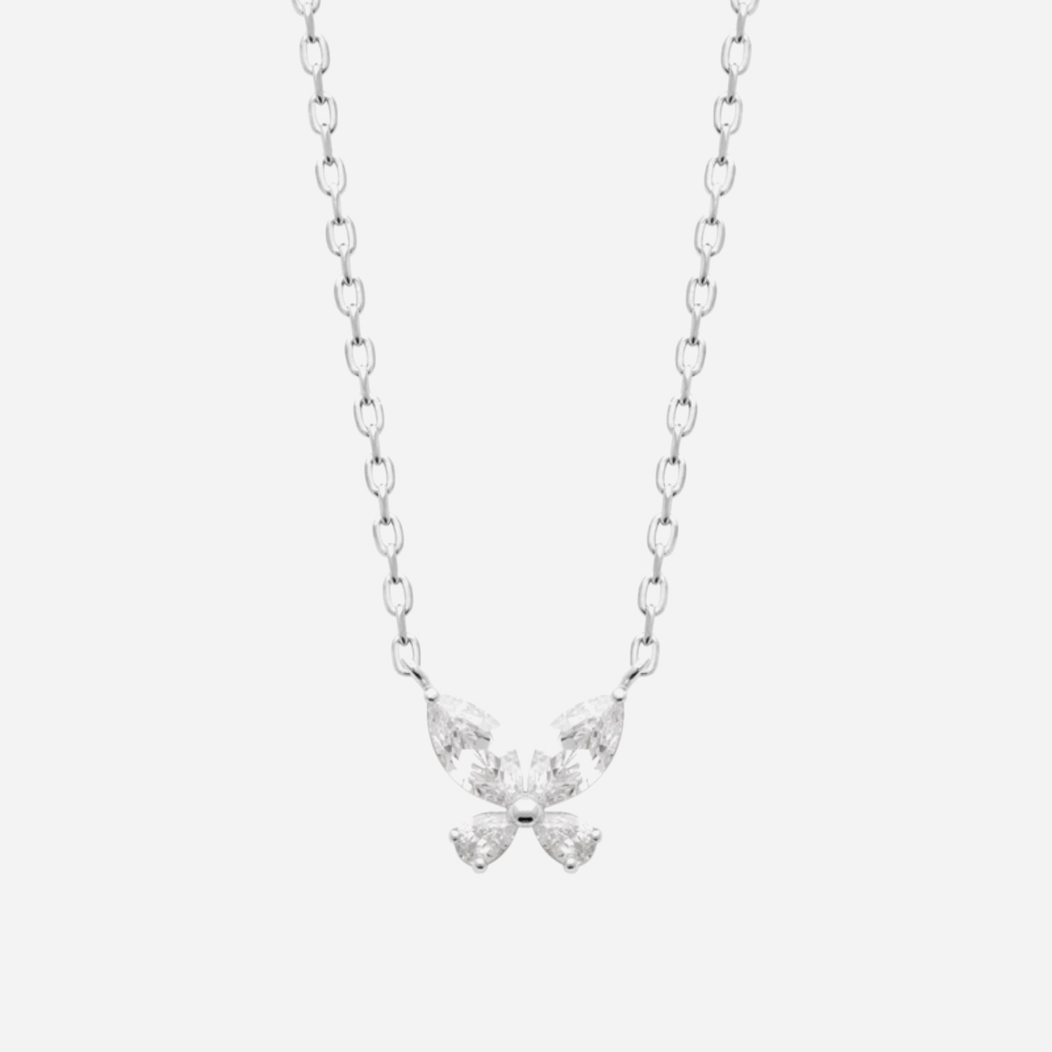 L’argent 925 rhodié garantit brillance inaltérable et protection anti-ternissement, tandis que l’oxyde de zirconium offre l’éclat scintillant du diamant. Le papillon, emblème de liberté et métamorphose, apporte une dimension poétique à ce bijou raffiné. Un collier élégant qui célèbre la beauté avec délicatesse et légèreté.