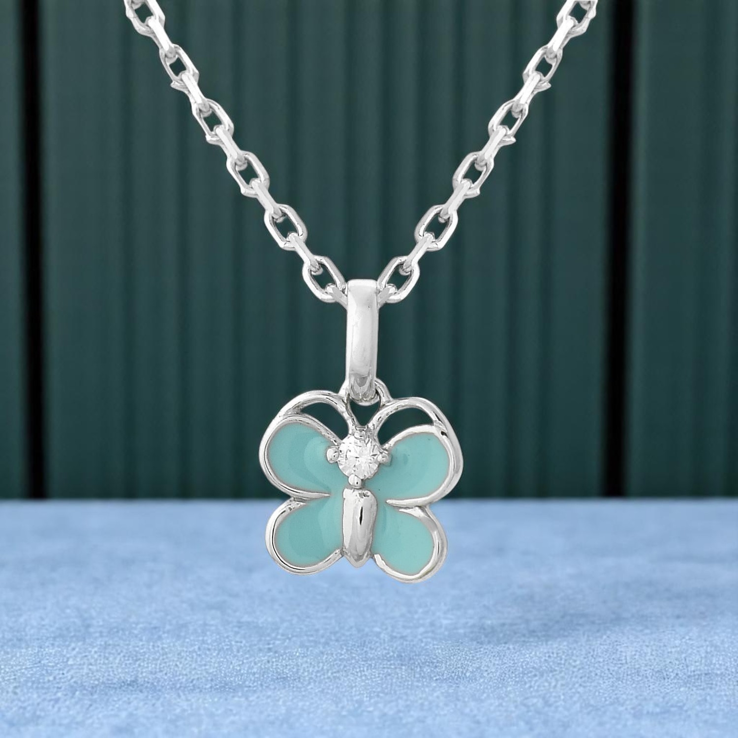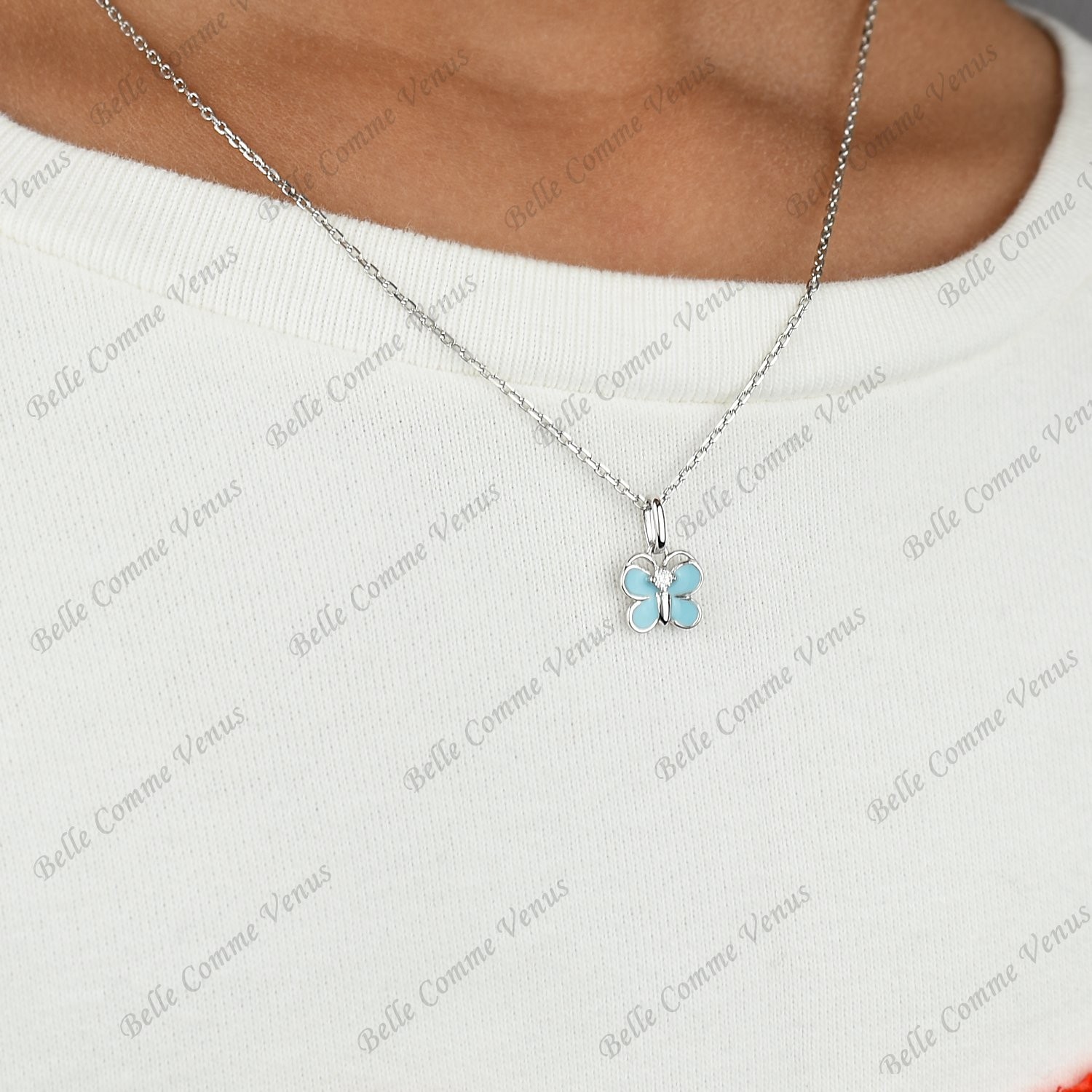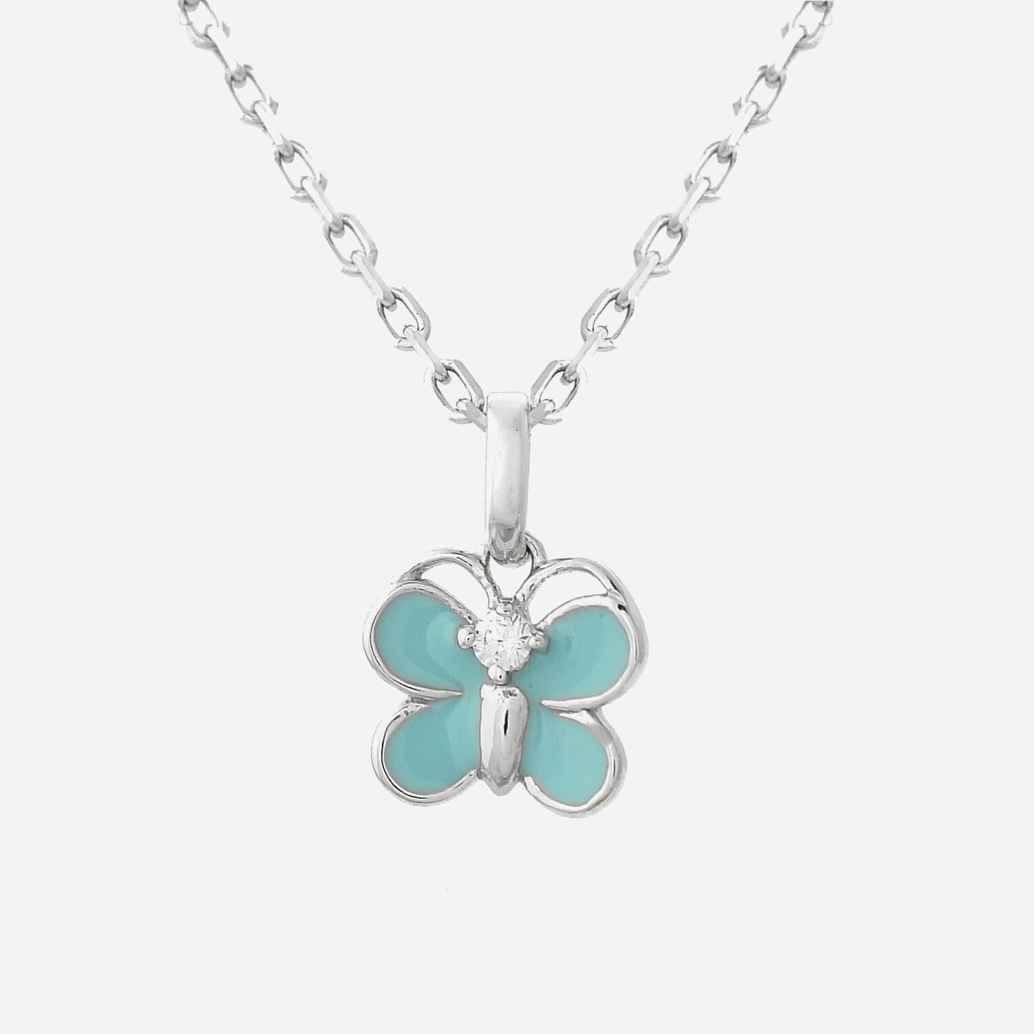 Collier papillon émail turquoise enfant argent 925 : légèreté colorée féerique