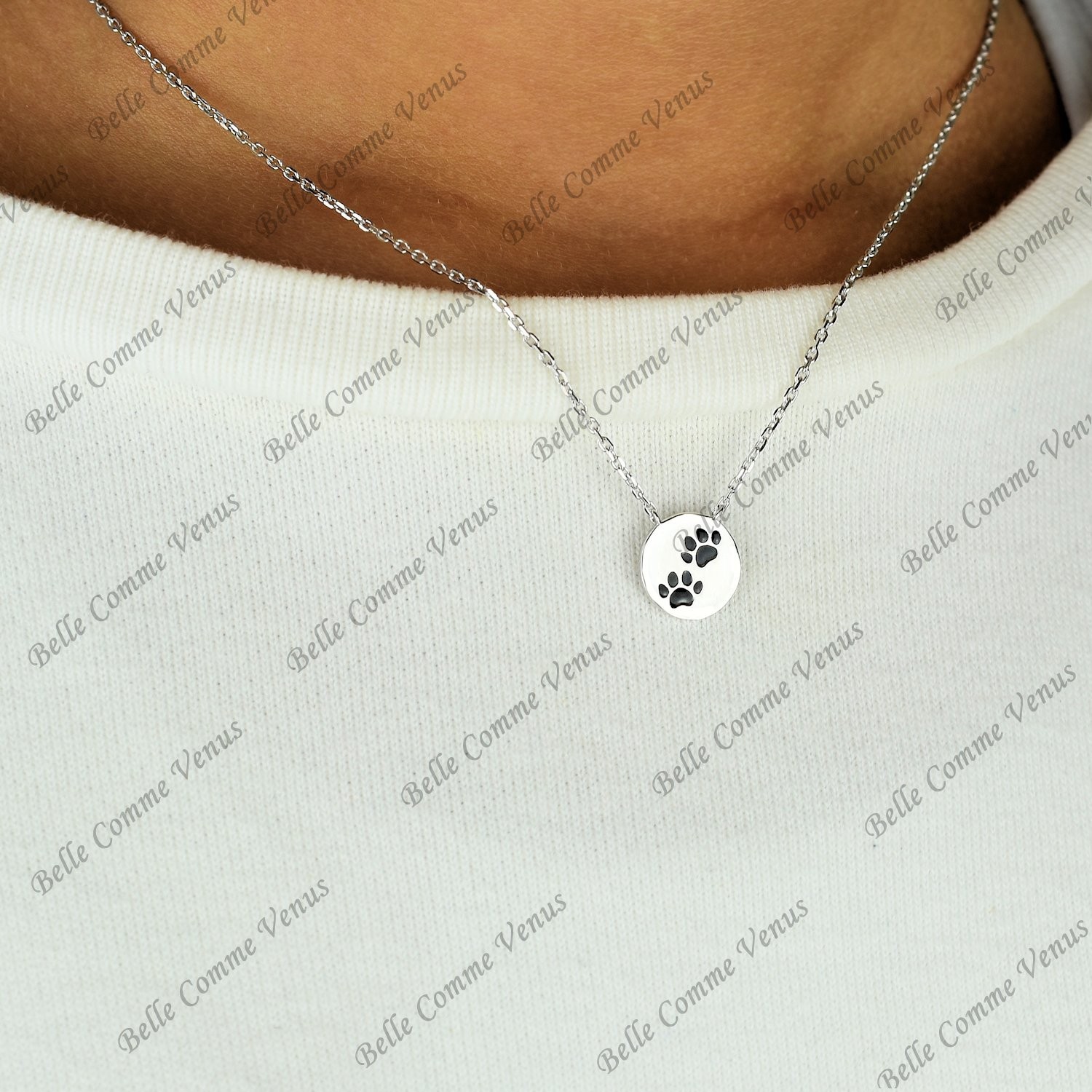 Le collier patte de chien chat enfant argent 925 rhodié célèbre la tendresse et la compagnie des animaux. Ce collier patte orné d’un coussinet en émail coloré noir évoque l’amour pour nos fidèles compagnons avec délicatesse et raffinement lumineux.