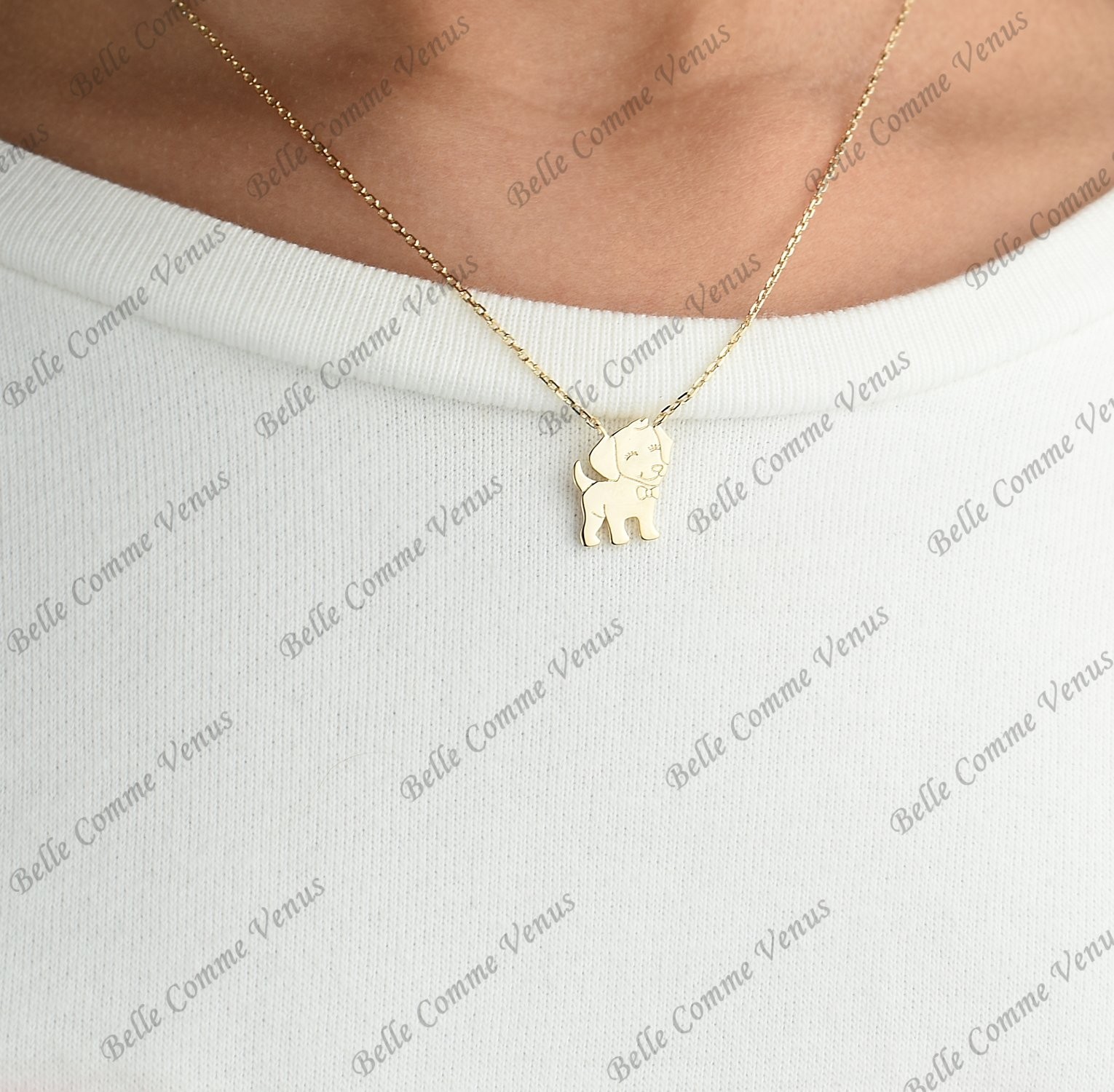 Un petit chien souriant espiègle suspendu à une chaîne délicate plaqué or 750 – 3 microns, spécialement conçu pour les enfants. Ce pendentif miniature capture toute la joie et la tendresse de son animal préféré dans un format adapté aux petits cous.
