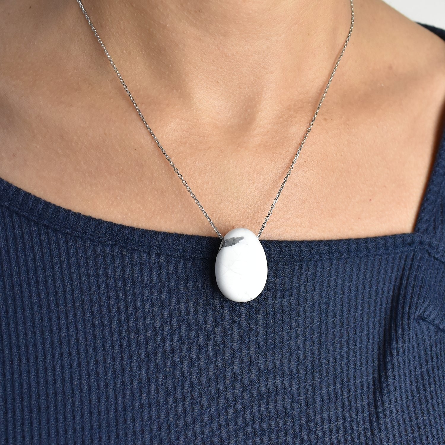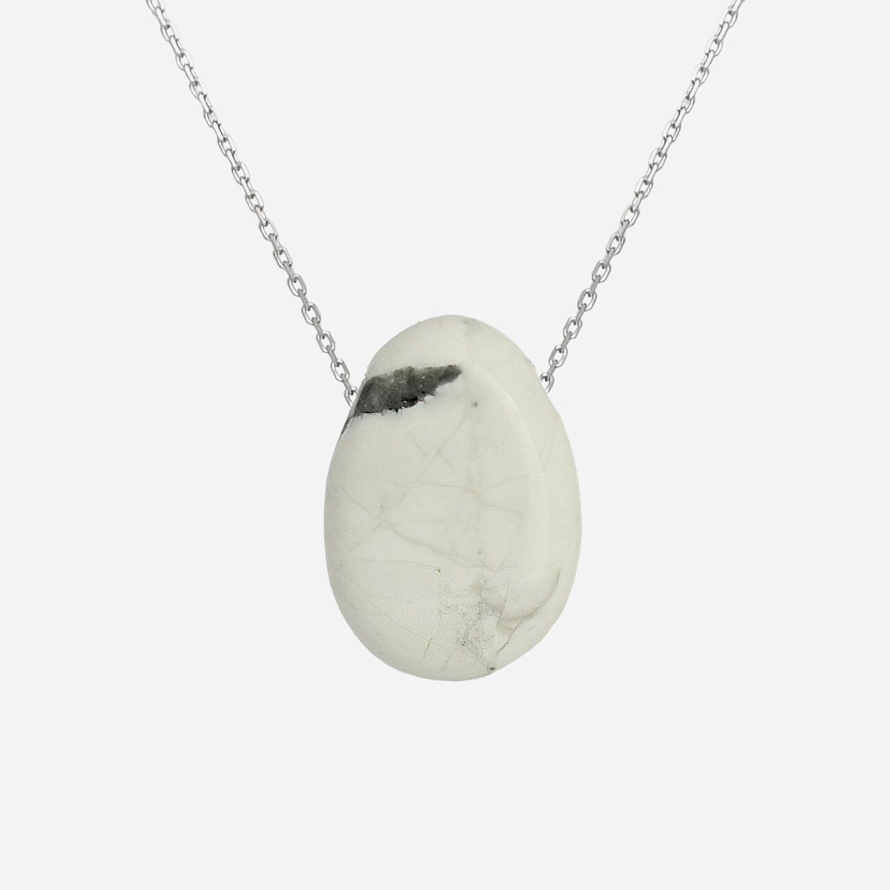 Découvrez notre sublime collier Howlite effet marbré, un bijou en argent 925 rhodié qui met en valeur une pierre naturelle d'une beauté exceptionnelle.
