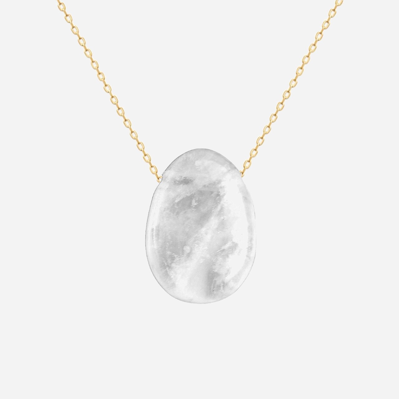 Ce collier en plaqué OR 750 3 microns se pare d’une pierre naturelle cristal de roche à la transparence pure. La clarté lumineuse caractéristique du cristal de roche rencontre l’éclat doré pour un bijou qui célèbre pureté minérale et sophistication dorée avec raffinement.