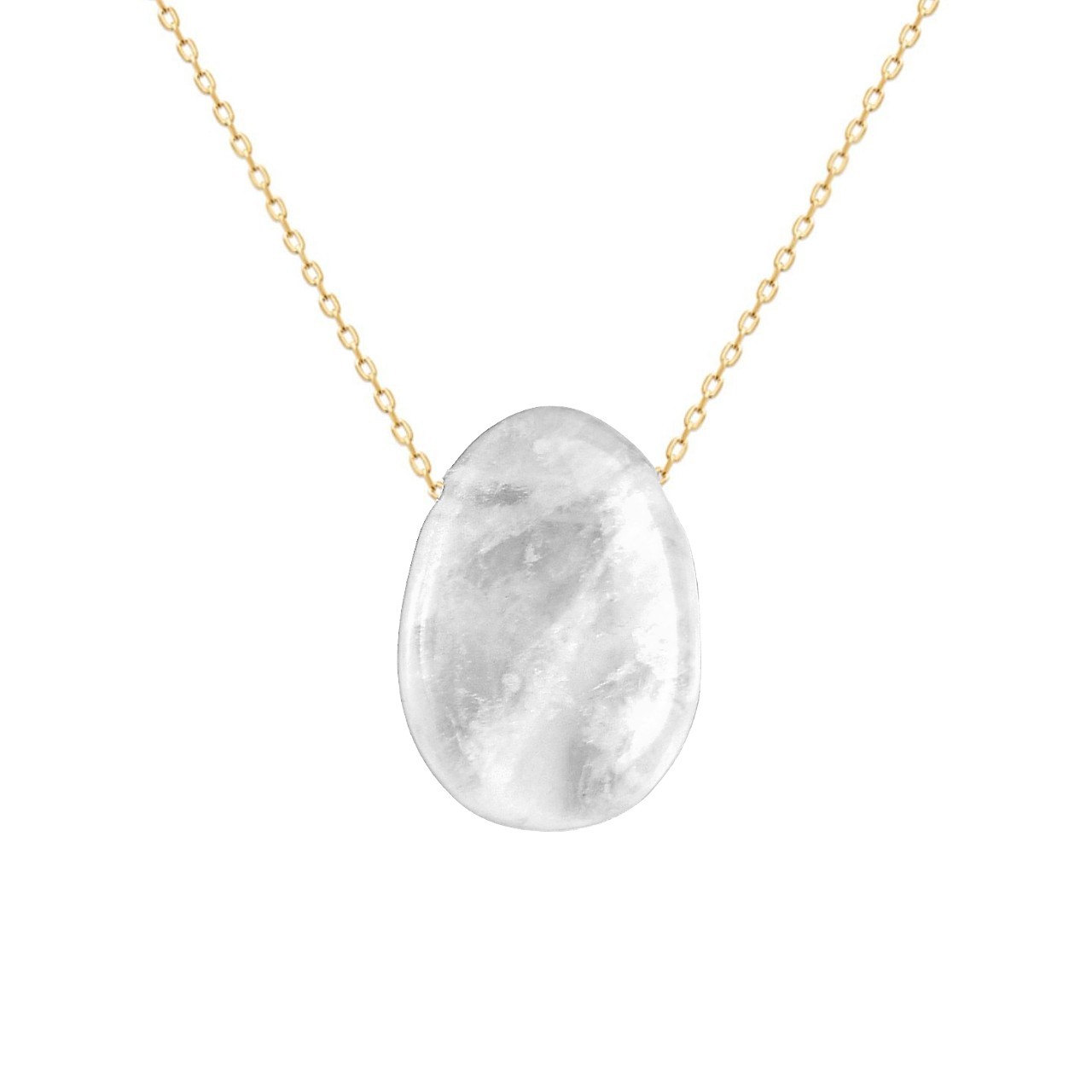 Un collier cristal roche plaqué or d’une transparence cristalline