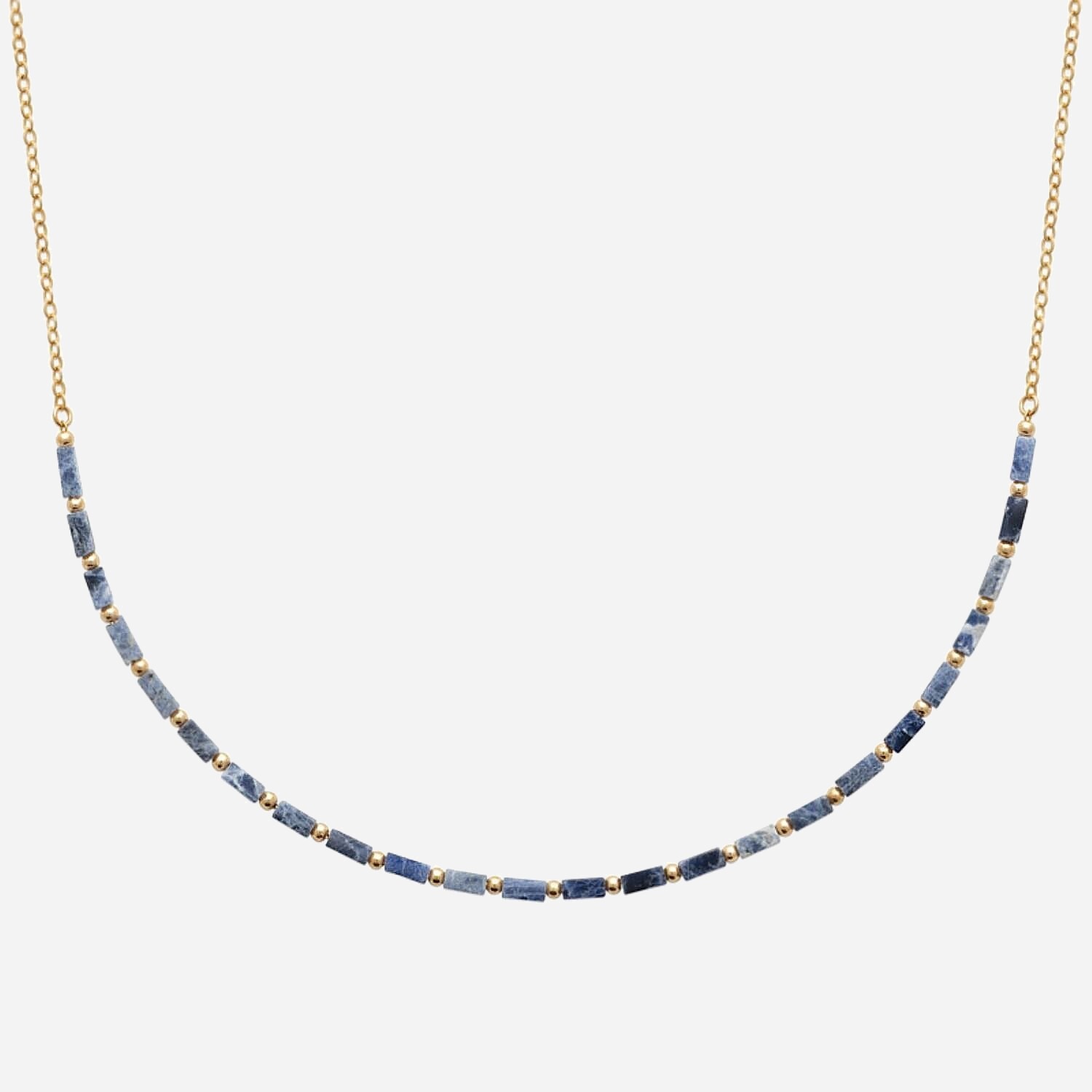 Découvrez notre collier en pierres naturelles sodalites plaqué OR 750 3 microns.