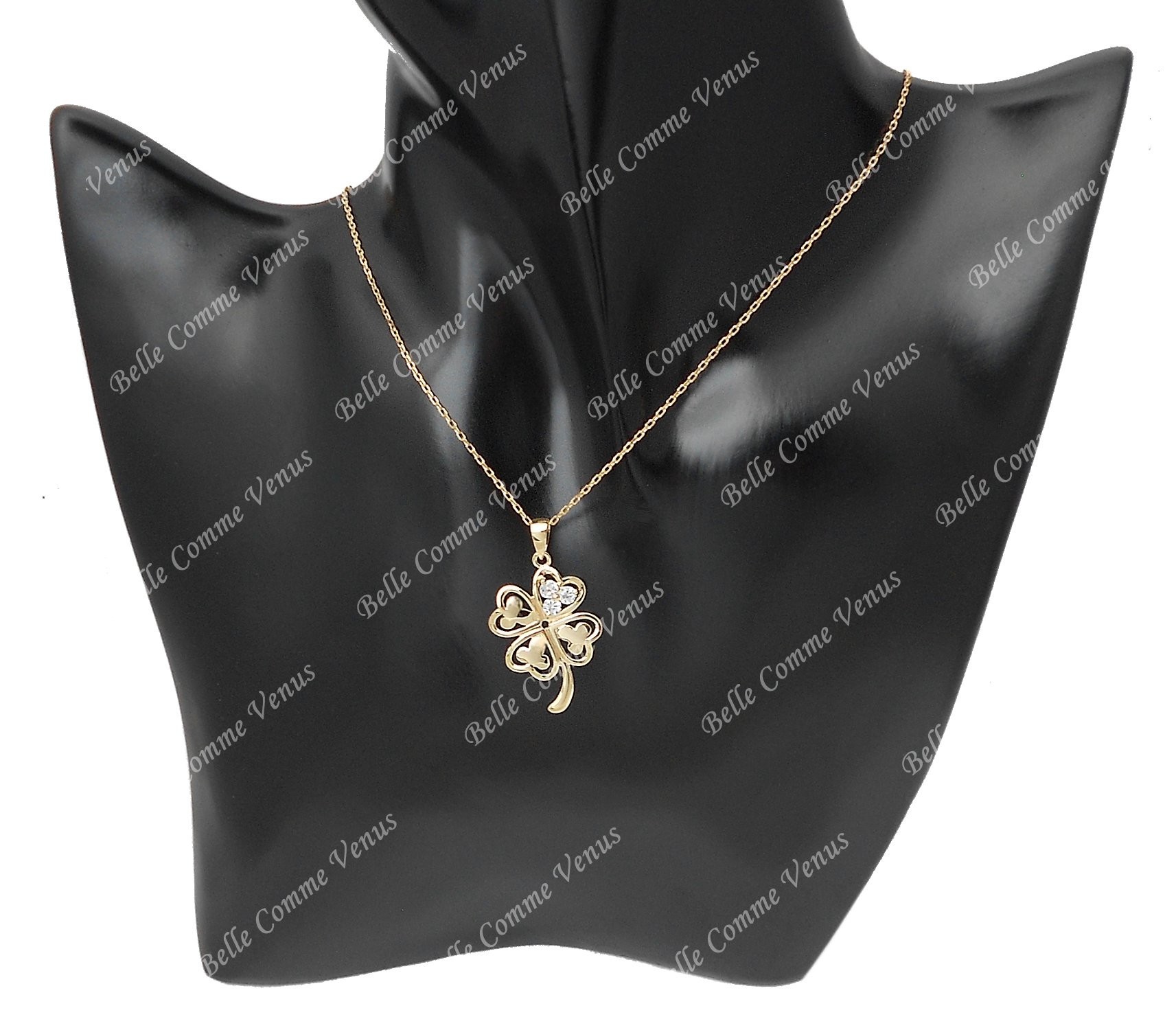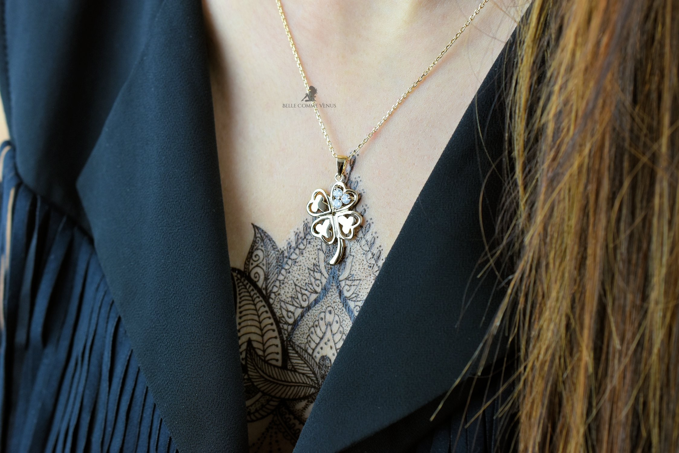 Collier porte bonheur trèfle coeurs plaqué or : chance et amour réunis