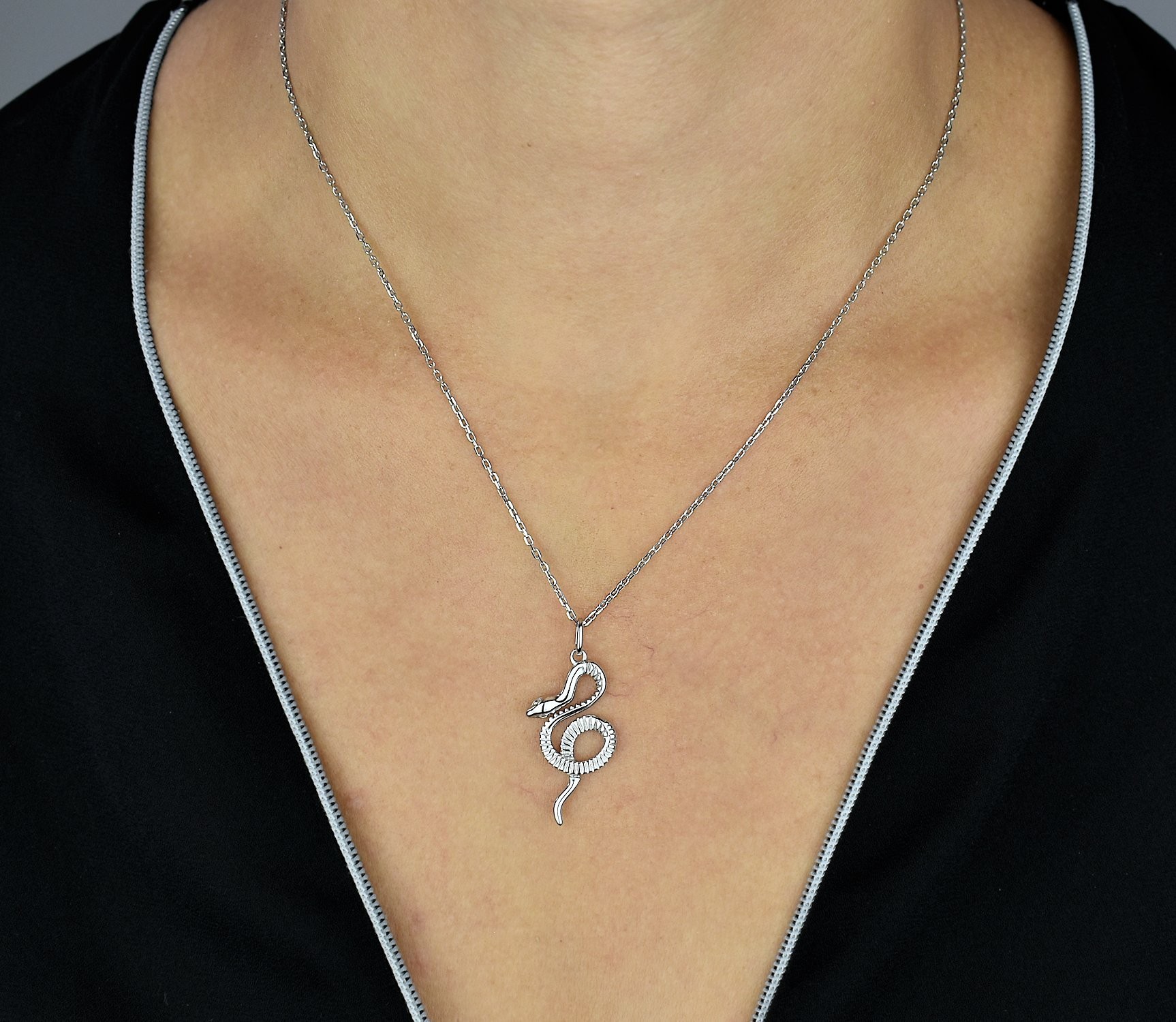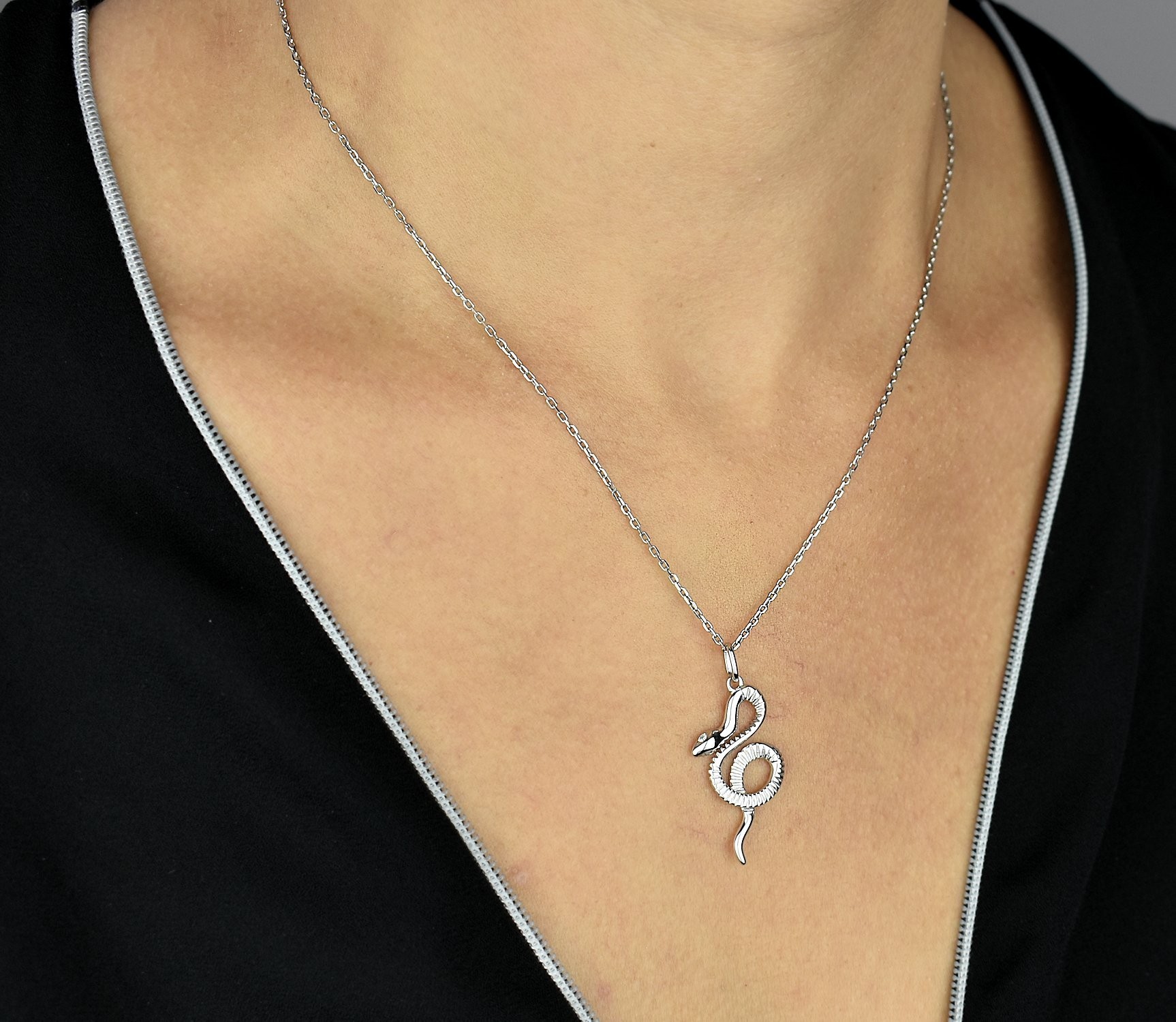 Le serpent symbolise renaissance et sagesse, sublimé par des yeux en oxydes de zirconium hypnotiques. L’argent 925 rhodié garantit brillance durable. Un collier qui affirme caractère et mystère avec finition joaillière précieuse et audace raffinée pour un style unique et captivant.