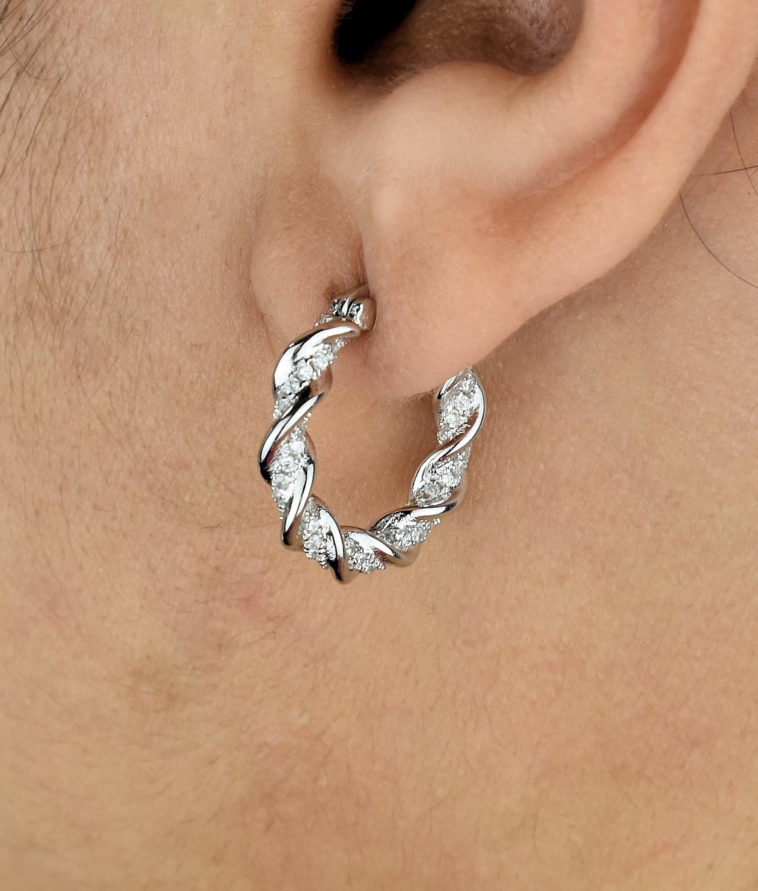 Des créoles torsade argent zirconium au relief sophistiqué