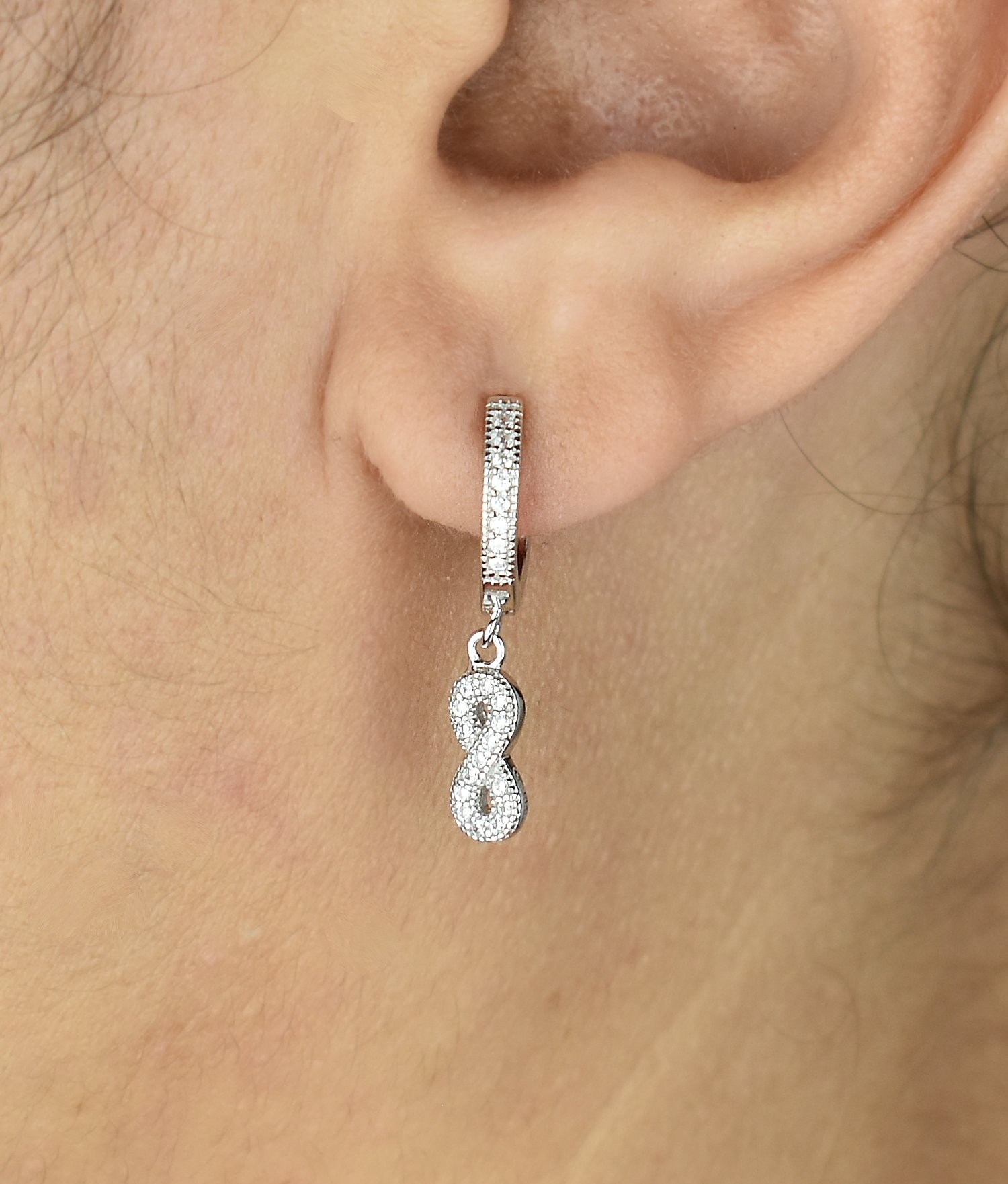 Ces mini créoles en argent 925 rhodié se parent d’un infini pendant serti d’oxyde de zirconium. Le symbole de l’éternité scintillant apporte une touche délicate et chargée de sens pour un bijou raffiné qui capte la lumière avec élégance.