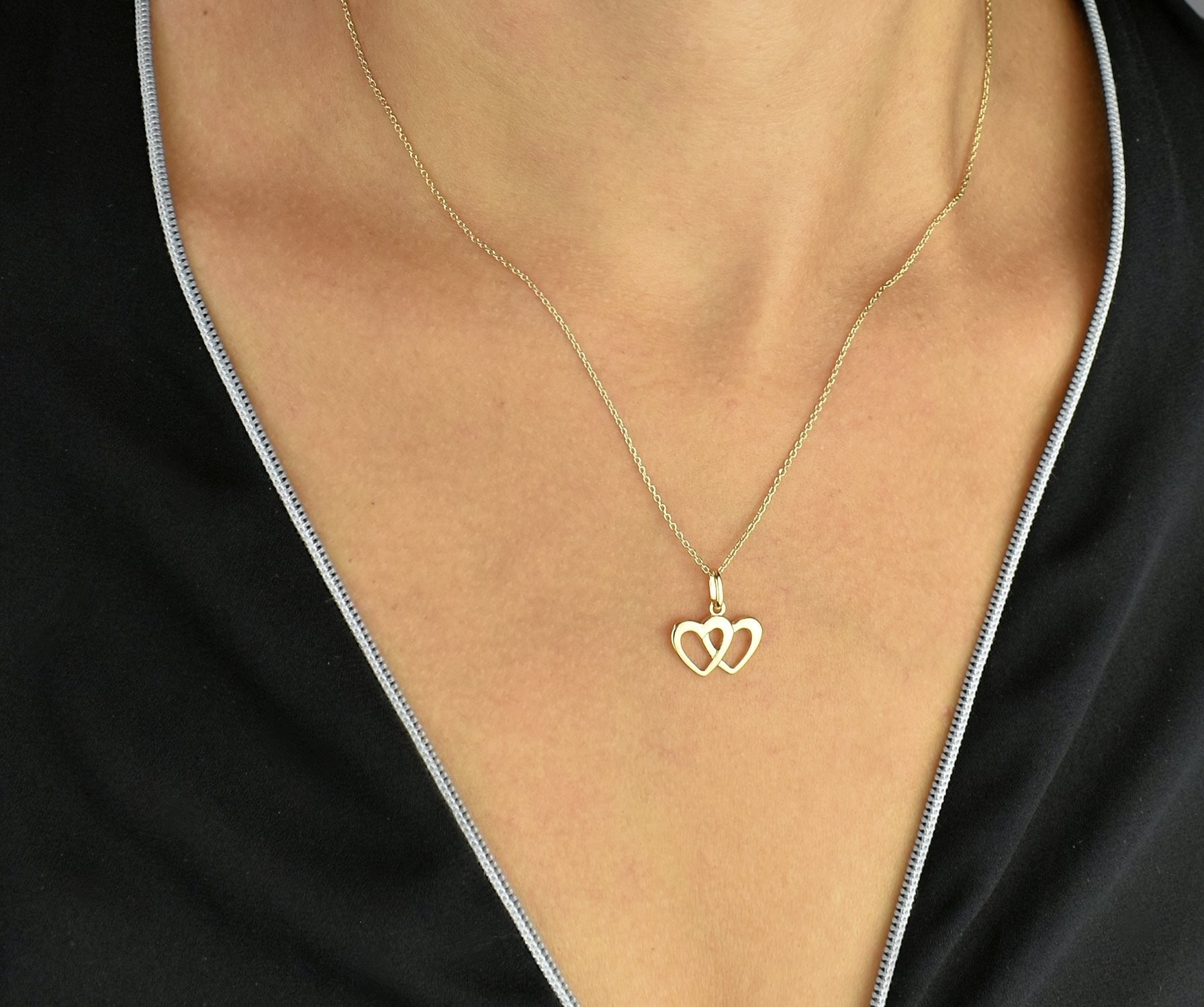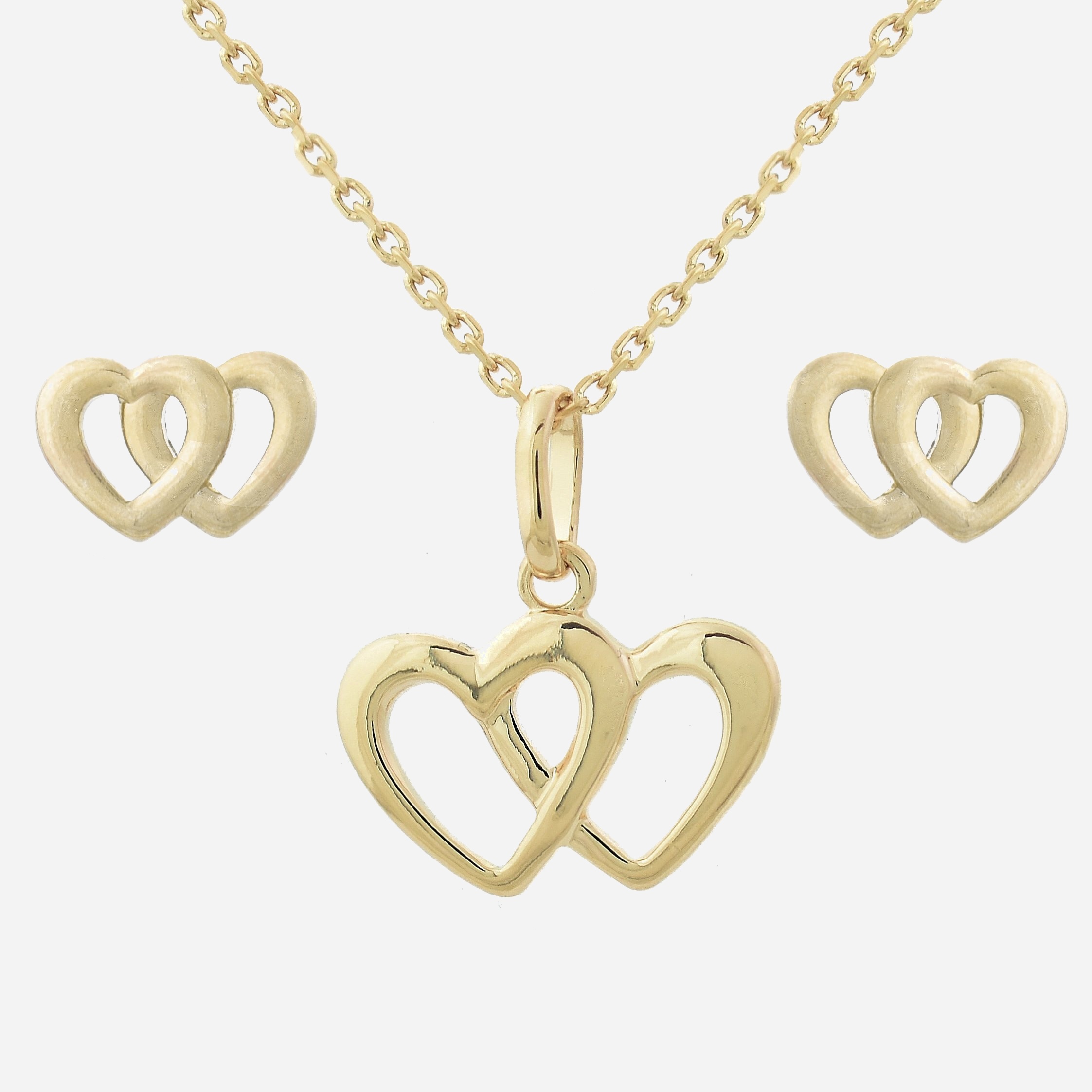 Une parure deux coeurs enlacés plaqué or symbole d’union précieuse