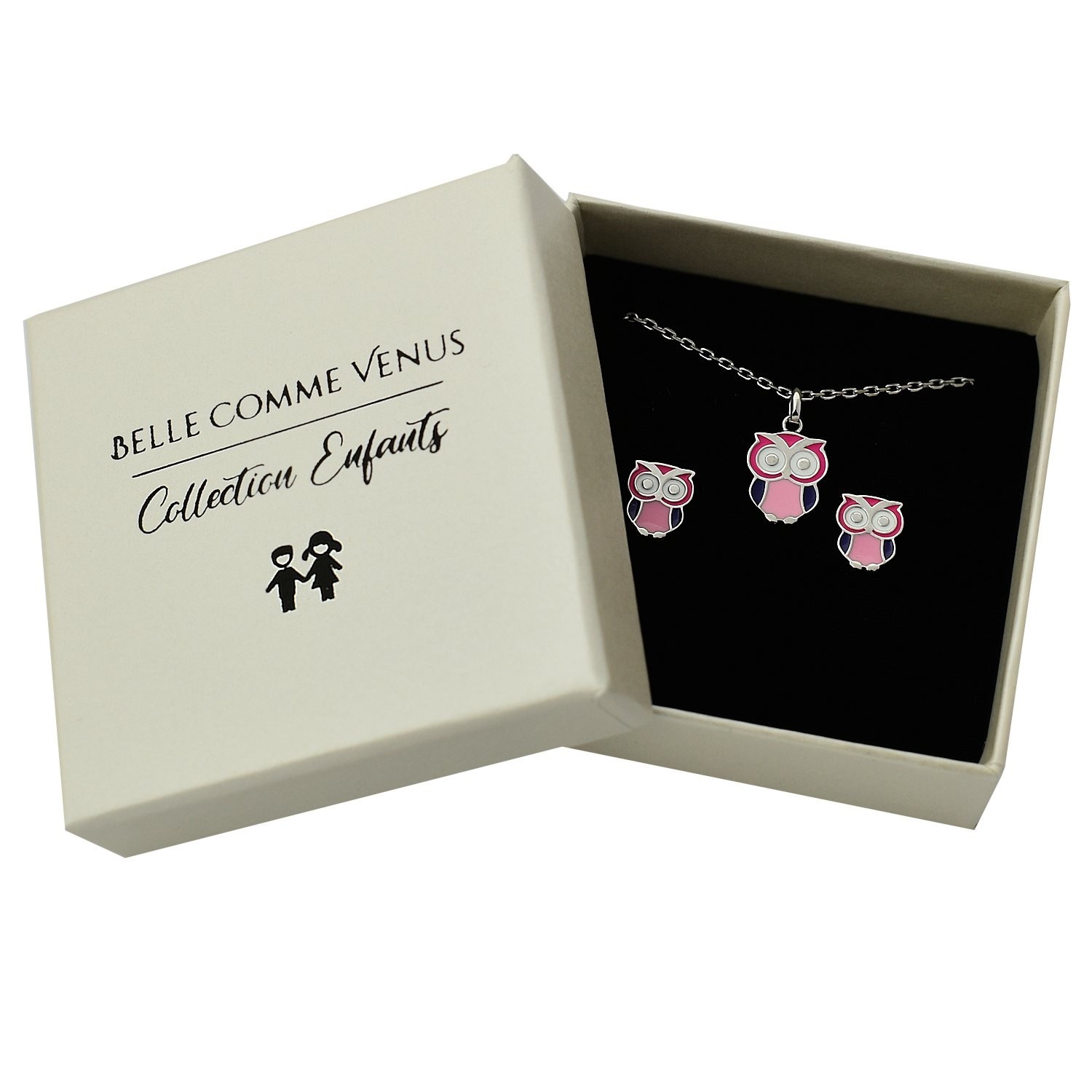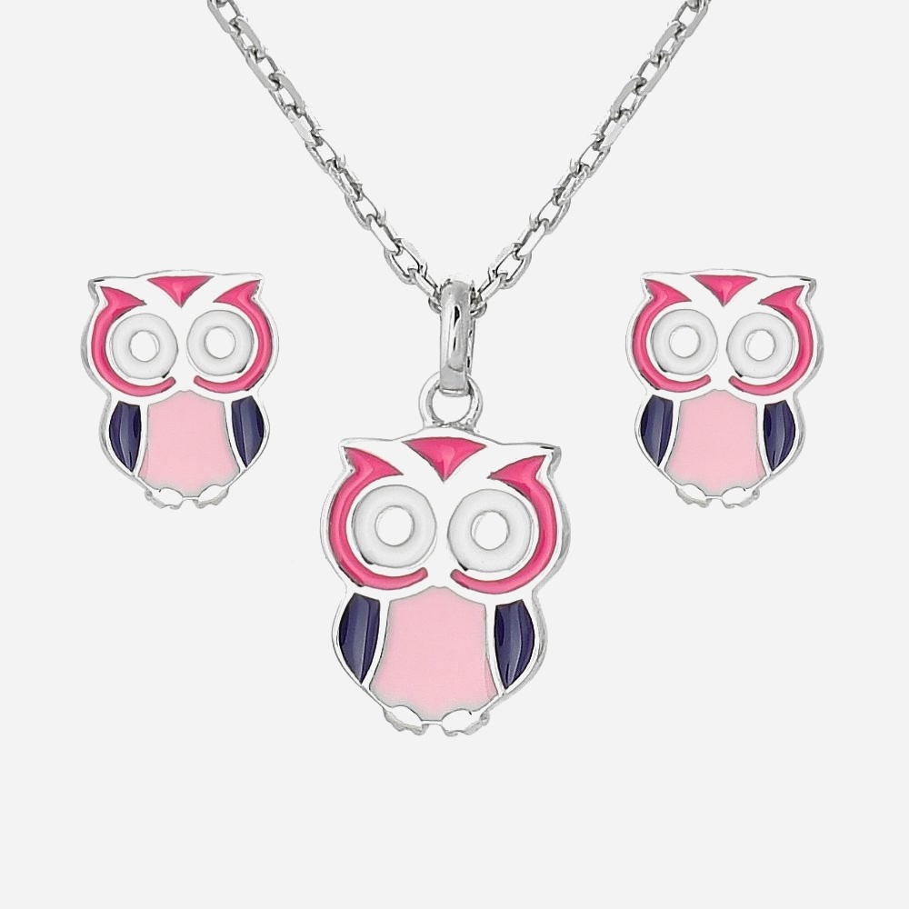 Une parure hibou émail enfant argent 925 pleine de sagesse naturelle