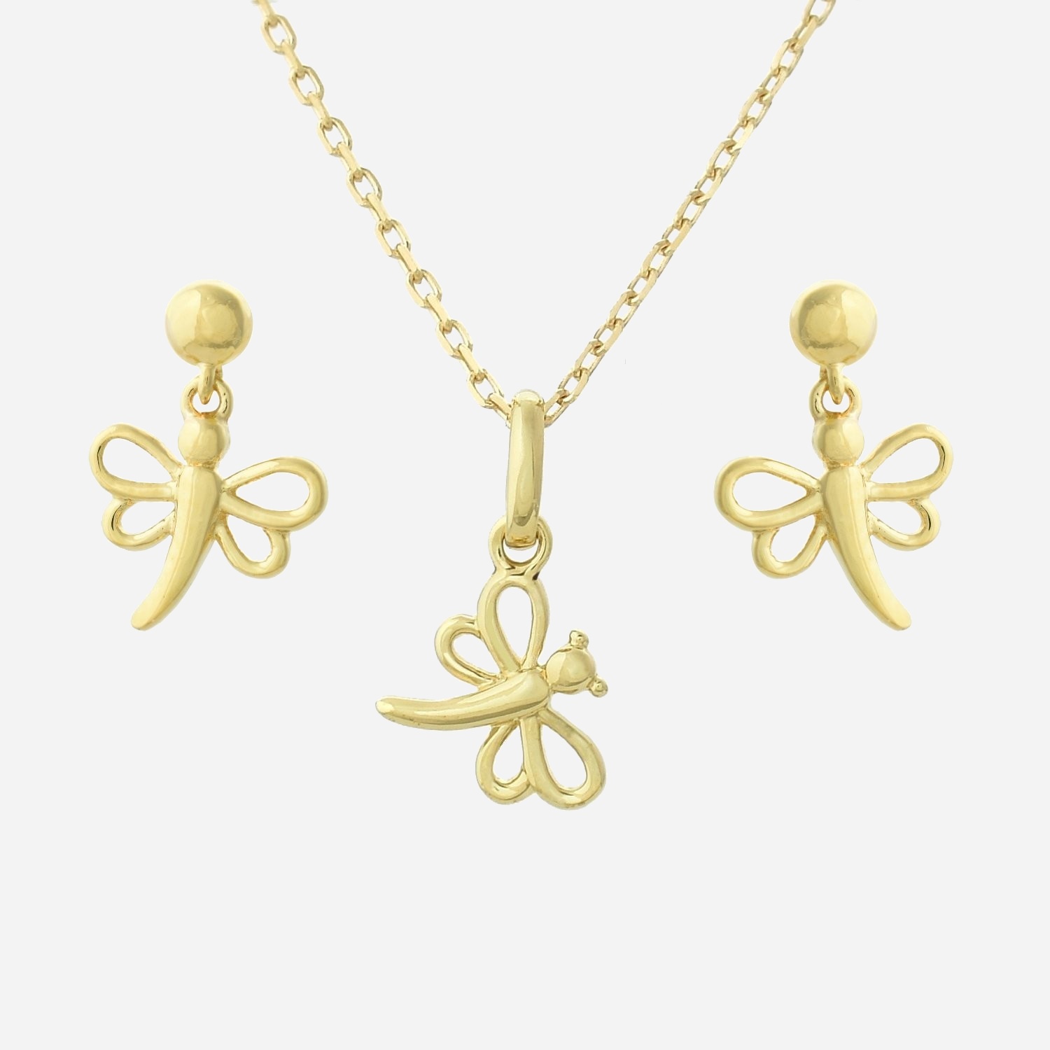 Cette parure plaqué or 3 microns devient l’ensemble préféré des petites amoureuses de la nature. Les libellules dorées apportent une touche de magie harmonieuse, célébrant la nature avec élégance complète. Parfaite pour un cadeau d’anniversaire ou pour marquer un moment spécial avec un ensemble féerique raffiné.
