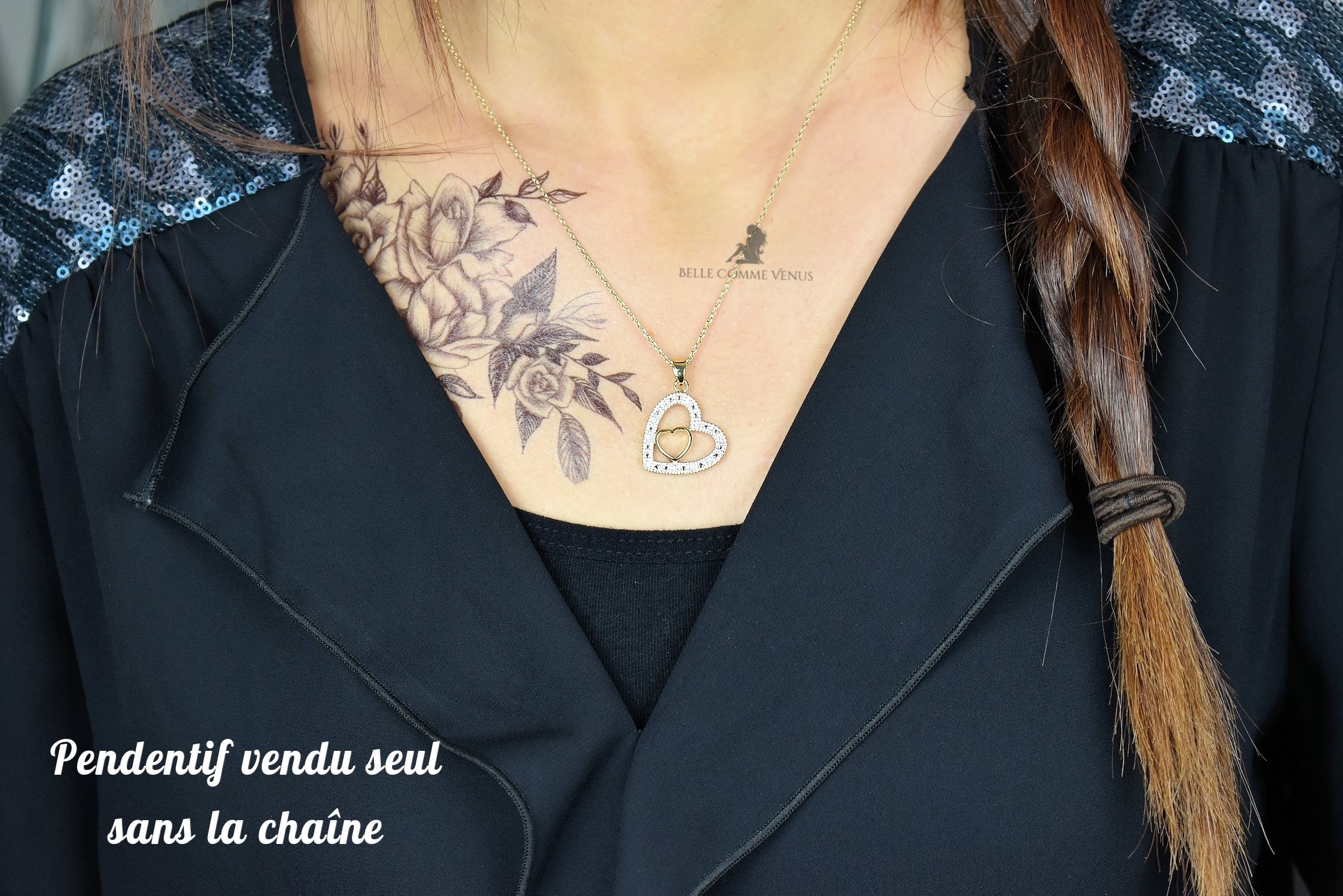 Pendentif 2 coeurs plaqué or : l’amour et l’unité en deux tons