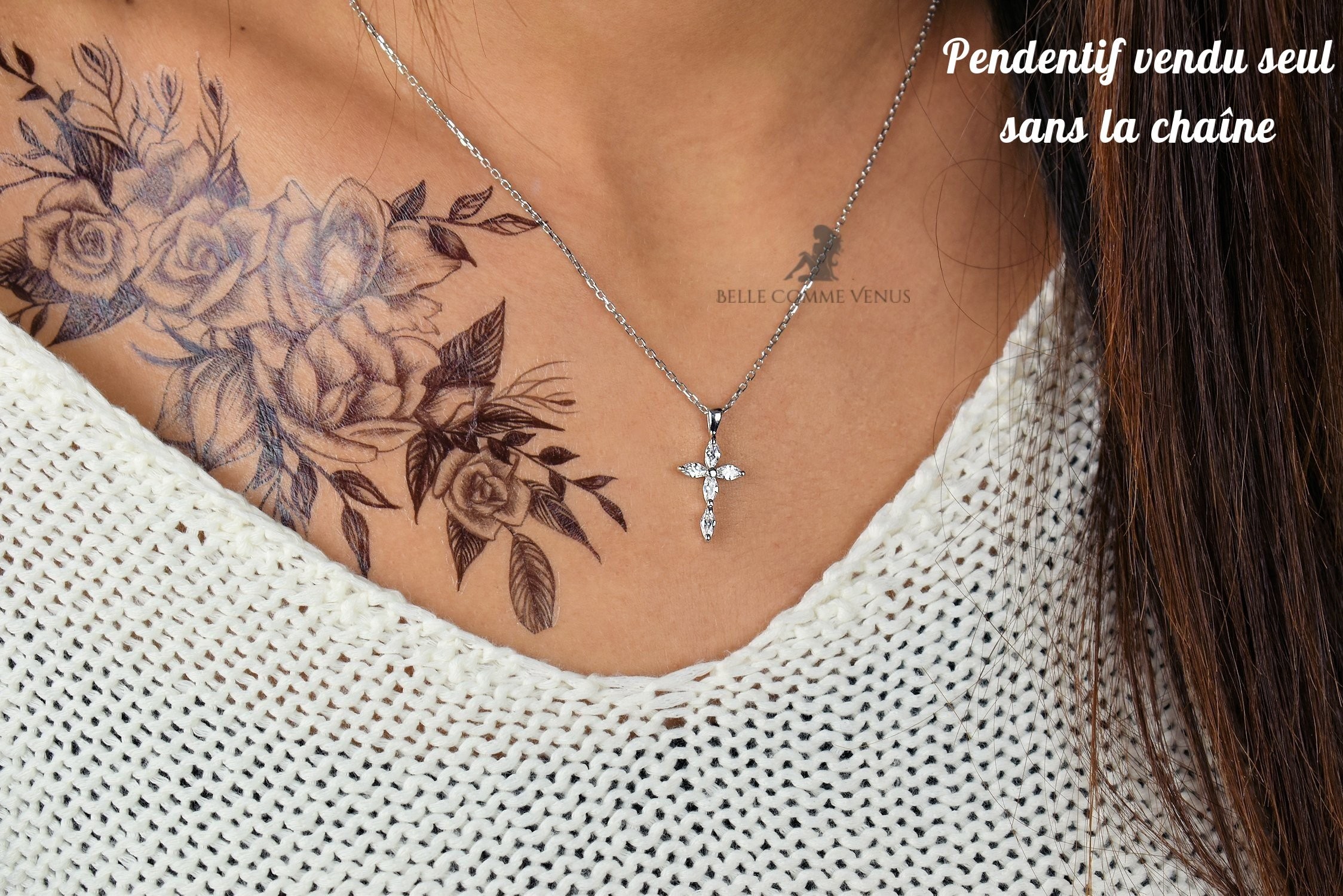 - Pendentif croix sertie d'oxyde de zirconium : 1.8 cm * 1.2 cm